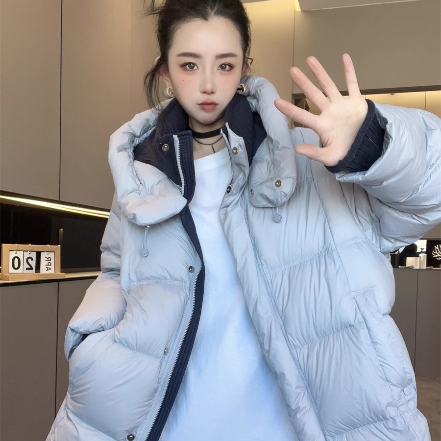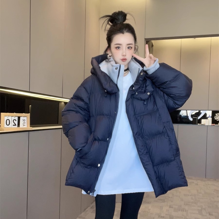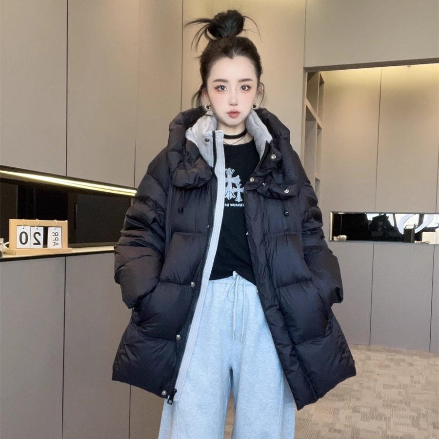 连帽羽绒服女2025新款冬季外套韩版宽松保暖面包服中长款上衣欧货