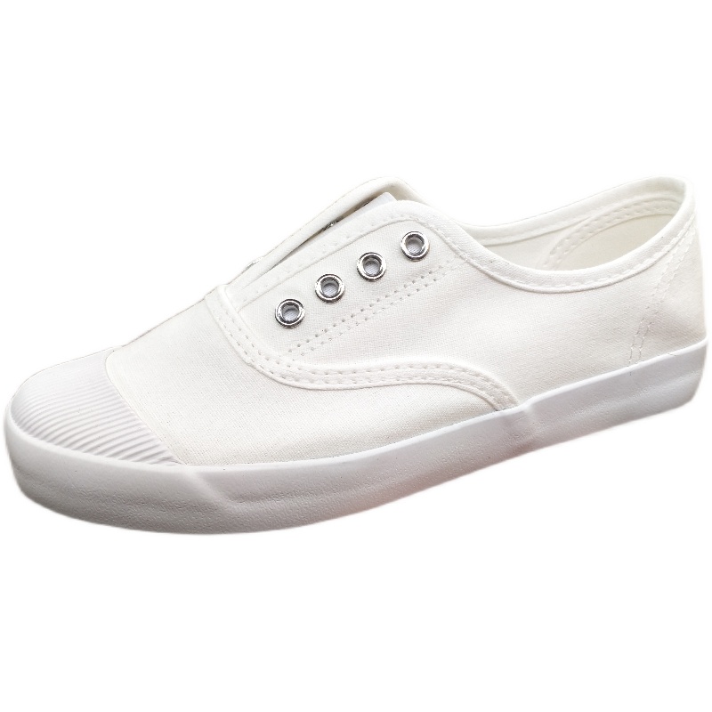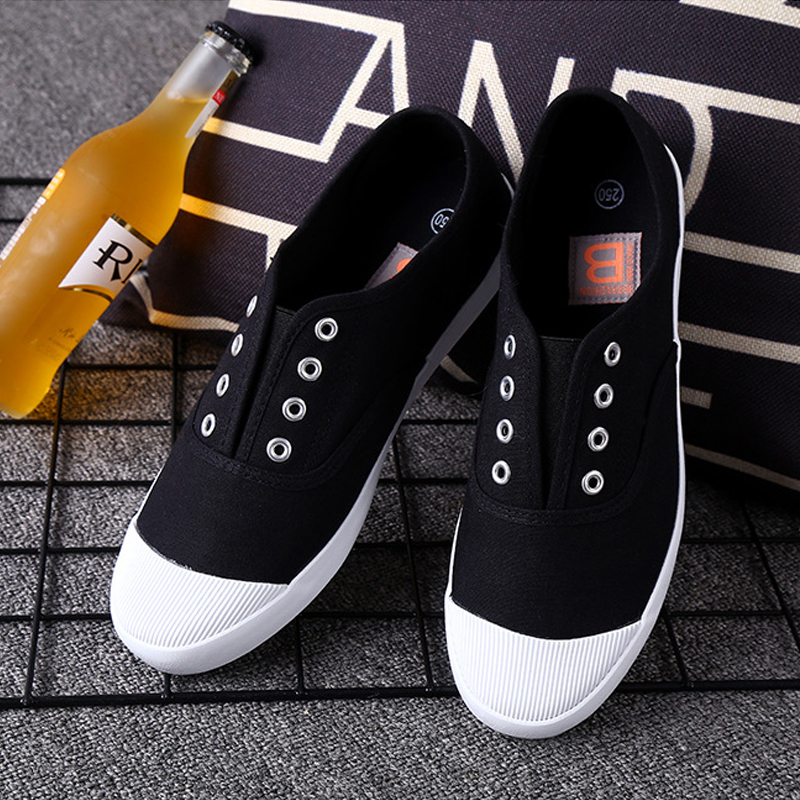 蓓尔春夏情侣小白鞋透气帆布鞋一脚蹬懒人鞋平底男鞋无鞋带休闲鞋
