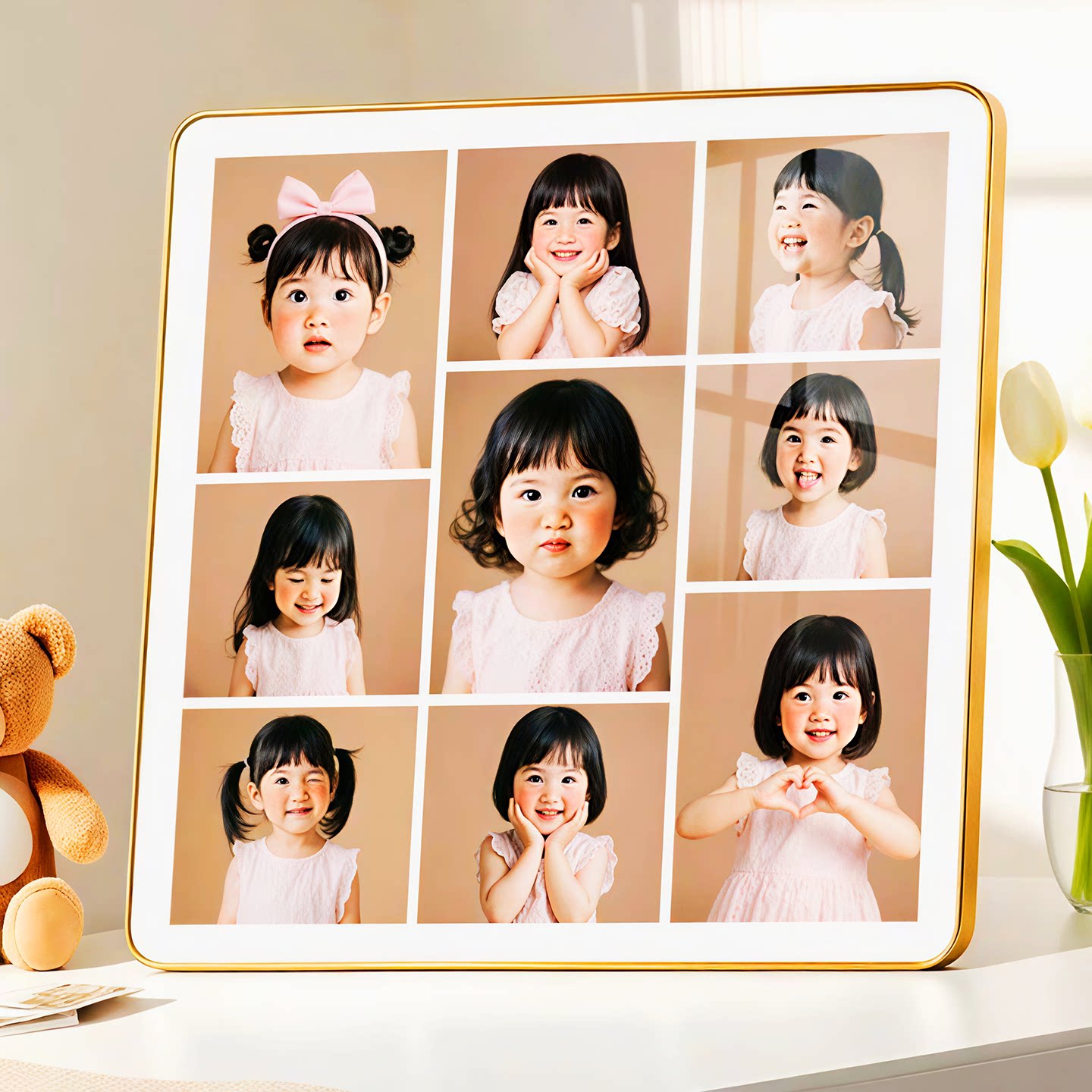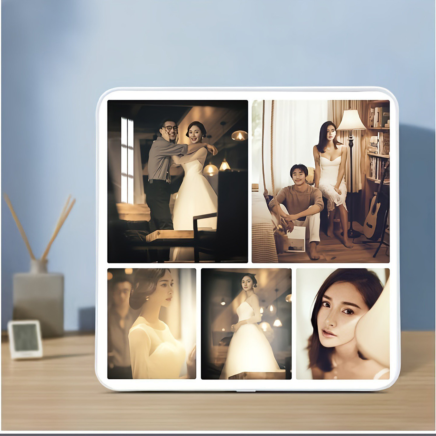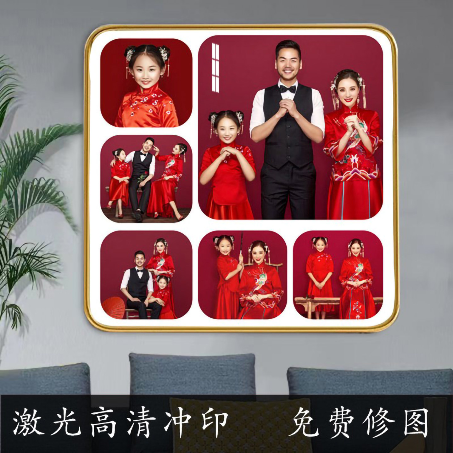 四九宫格正方形相框婚纱照全家福情侣儿童艺术照定制十寸水晶摆台