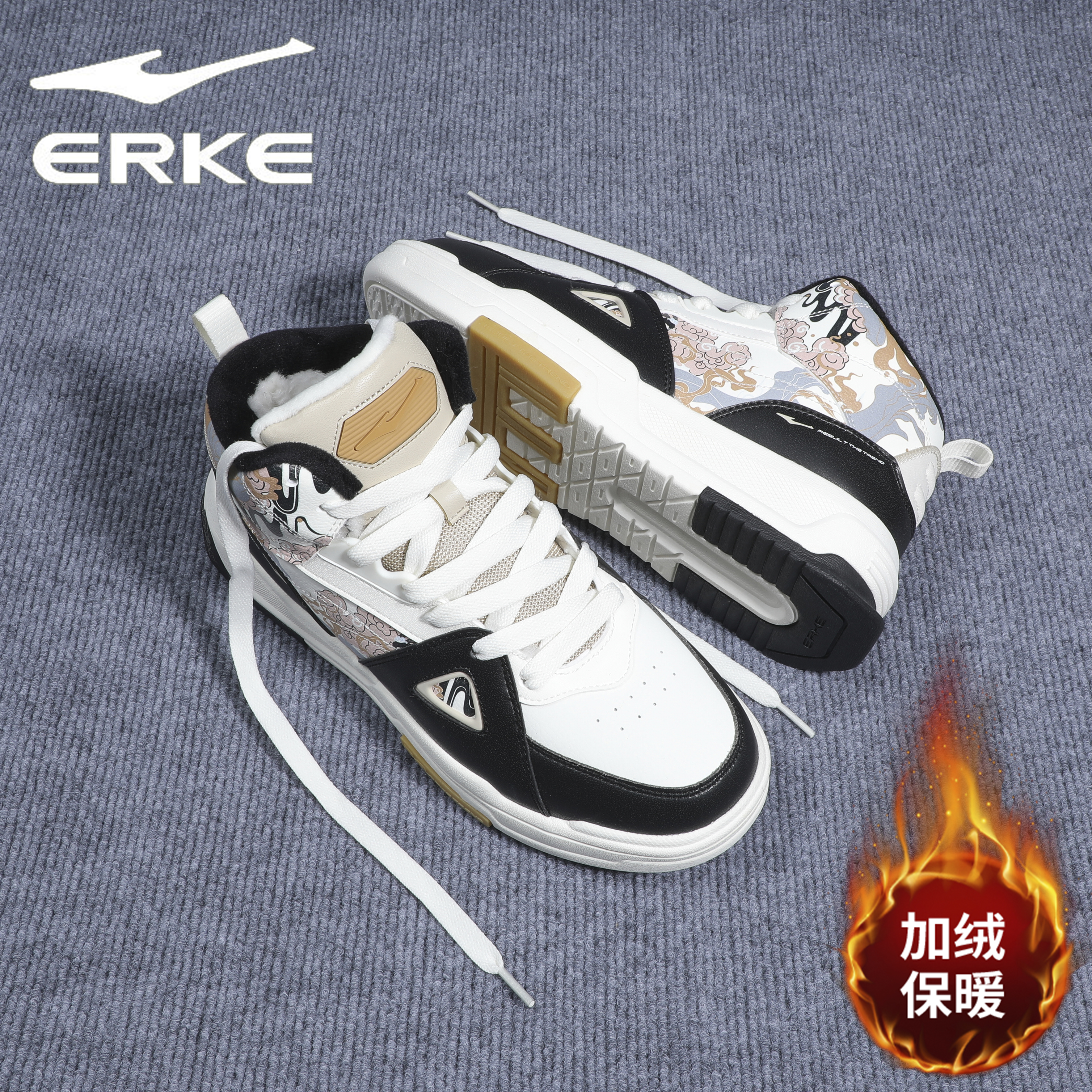 鸿星尔克男鞋高帮板鞋2025冬季新款祥云加绒经典学生软底运动鞋子