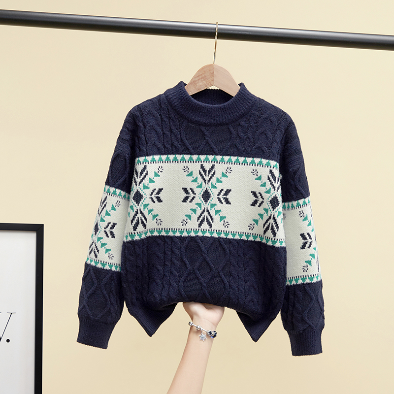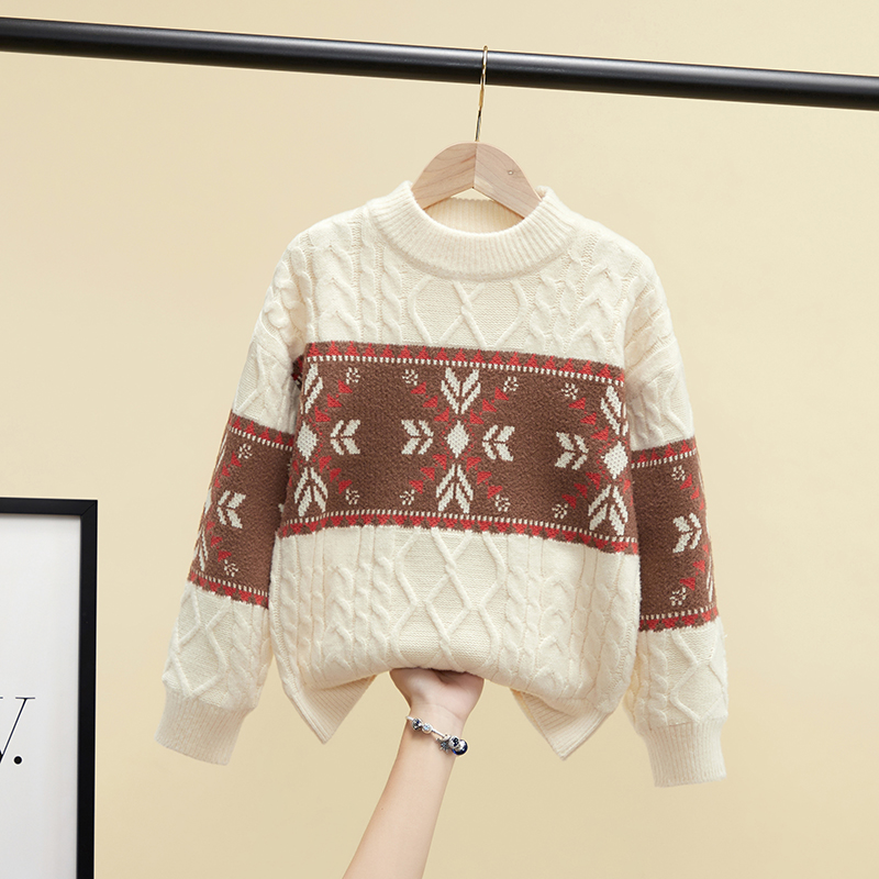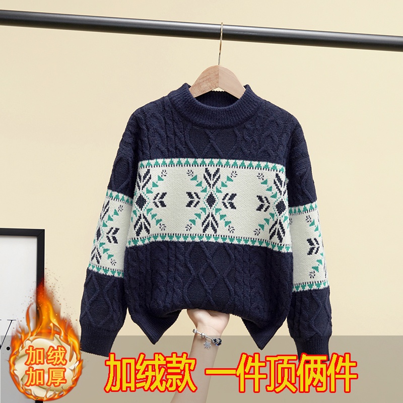 秋冬男童加厚针织衫毛衣中大童加绒厚内穿套头圆领儿童打底衫上衣