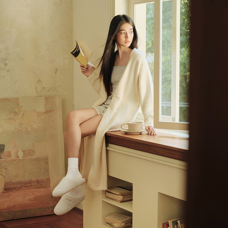 朴西苔痕简约加绒棉拖鞋女士