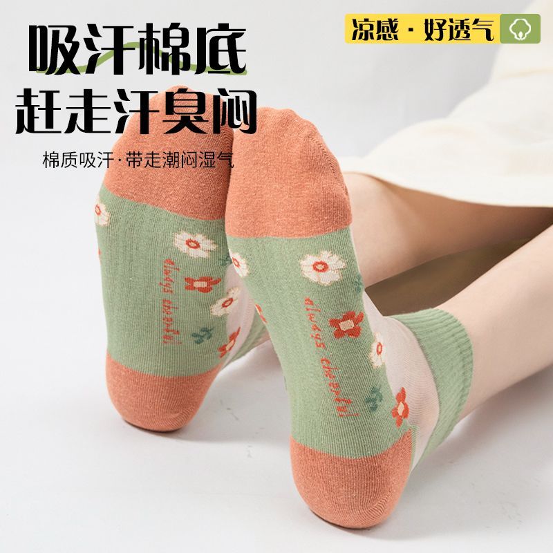 袜子女士夏季棉底丝袜ins水晶袜薄款透气脚底防滑防勾玻璃丝短袜