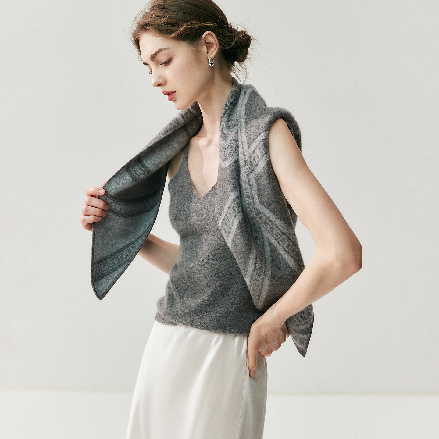 意式轻奢!25秋冬山羊绒围巾女双面提花针织围脖保暖百搭披肩两用