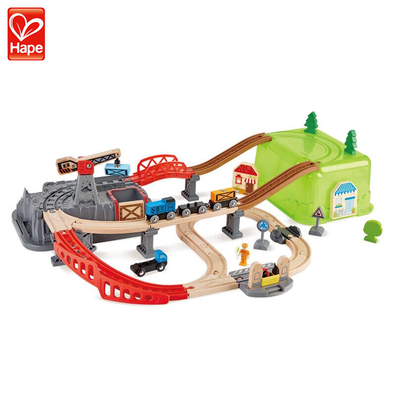 hape火车轨道玩具儿童轨道车木质积木拼装套装生日礼物兼容宜家