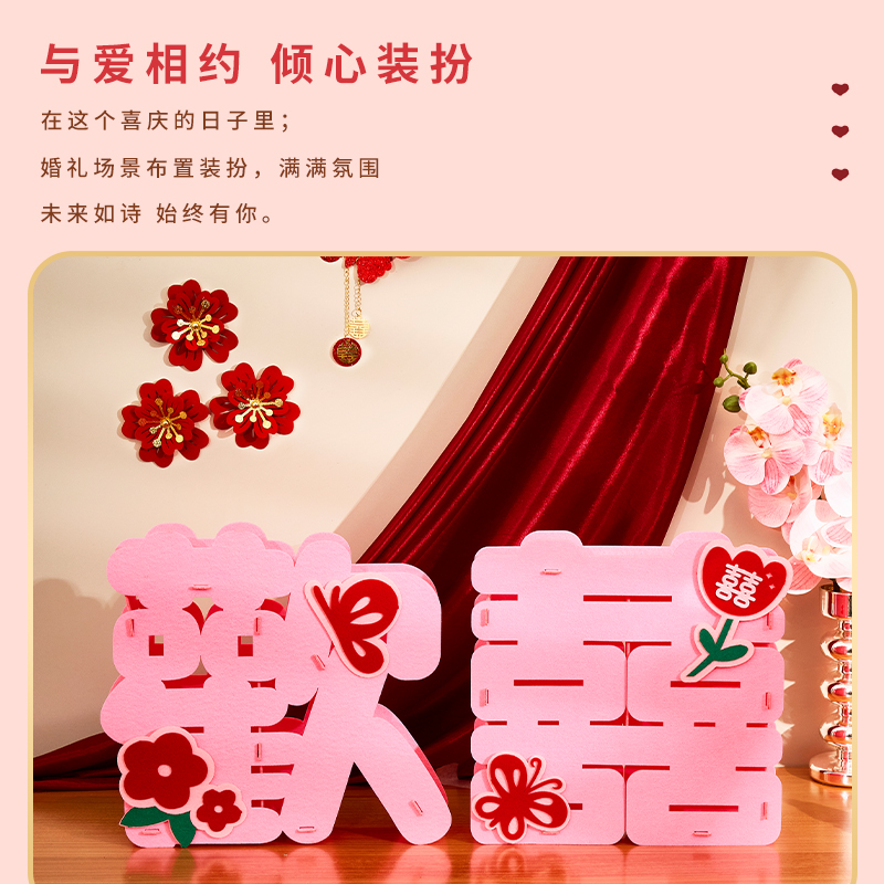 结婚立体喜字摆件创意订婚布置婚房装饰主卧客厅套装婚礼用品大全