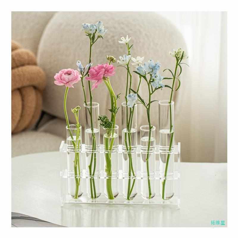 网红试管花瓶洋牡丹水培玻璃瓶创意绿植器皿迷你小口径一排小花瓶