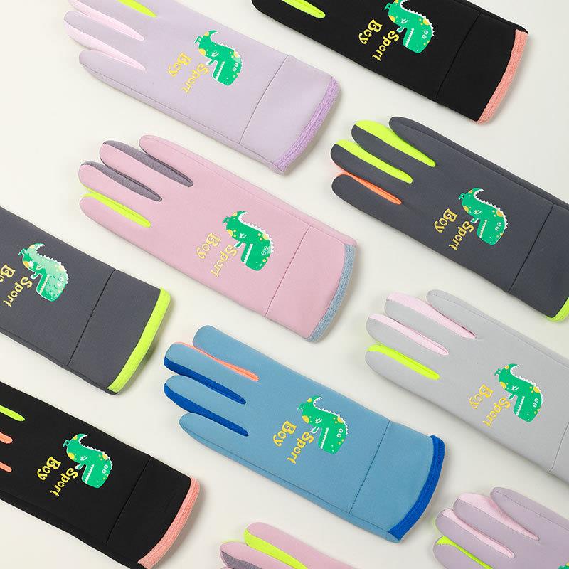 儿童专用保暖手套夜光女孩骑行旅游装备加绒防寒防泼水大童秋冬季