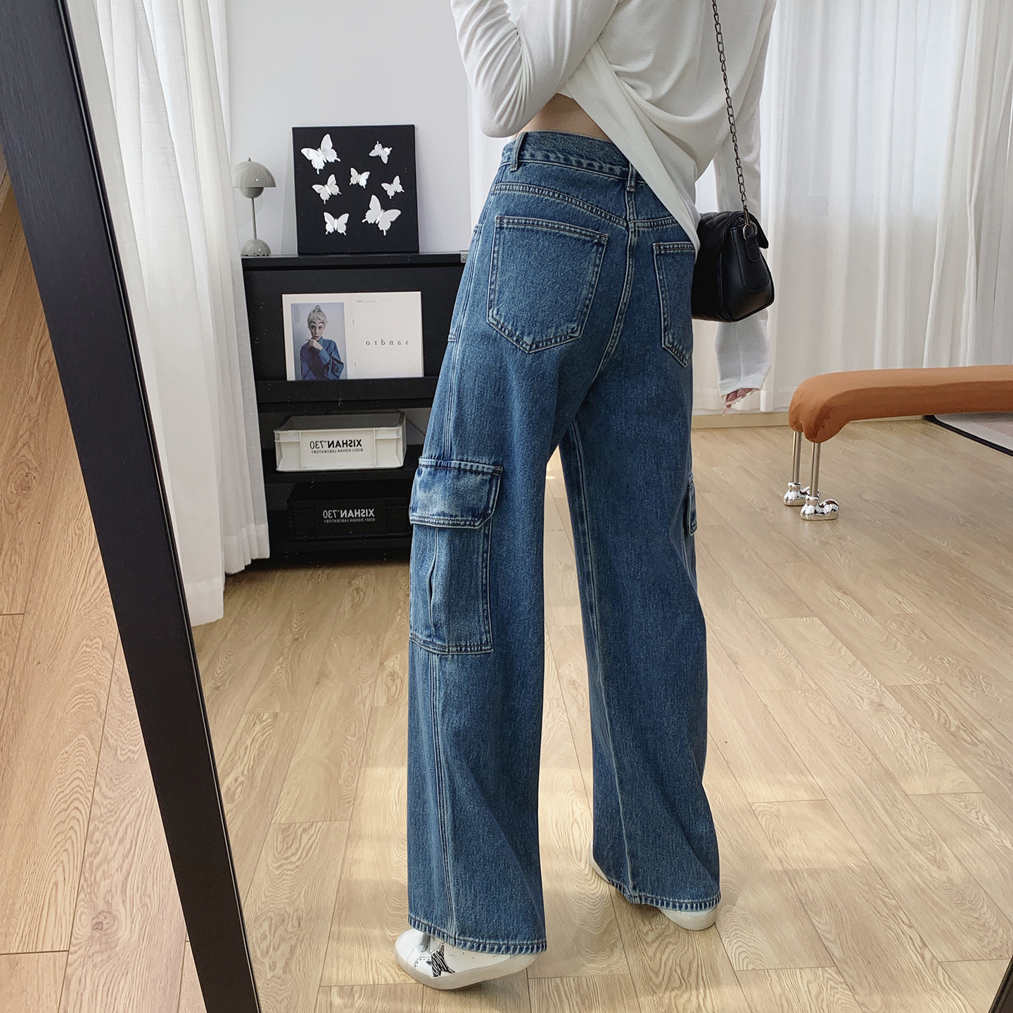 高腰显瘦垂感工装阔腿牛仔裤女秋