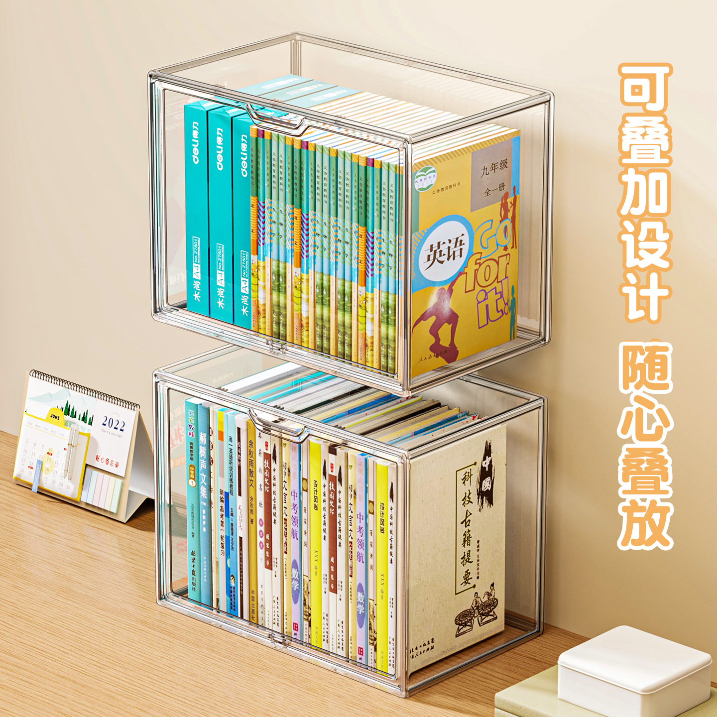 亚克力书本收纳盒学生书桌置物架桌面防尘书柜书籍透明收纳箱神器
