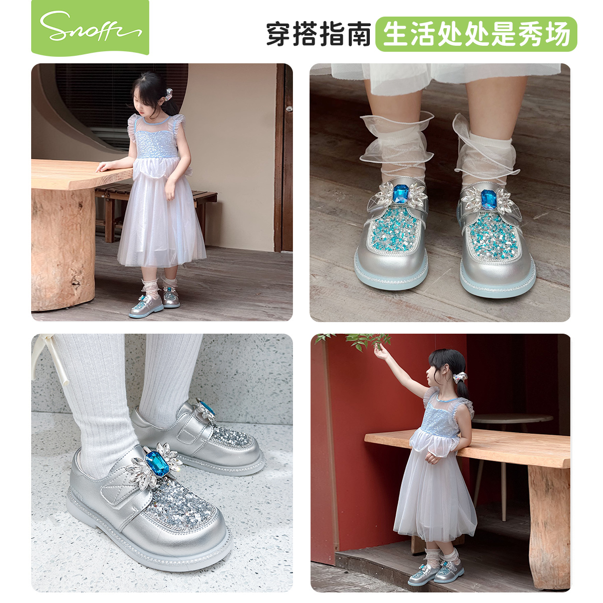 【商场同款】斯纳菲女童水晶鞋儿童皮鞋2025春秋款闪亮女宝公主鞋