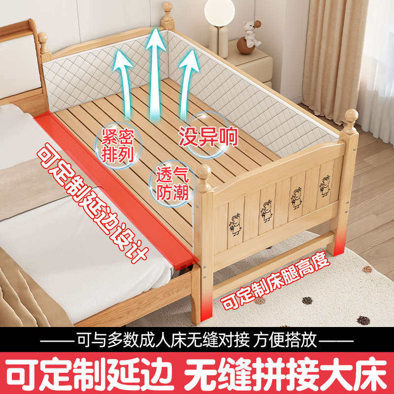 儿童床实木男女孩带护栏宝宝加宽大平床公主婴儿床接拼接床边小床