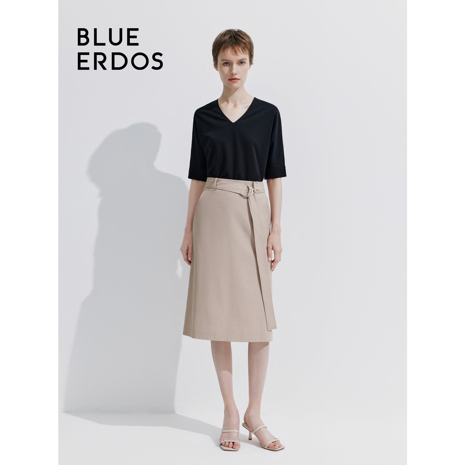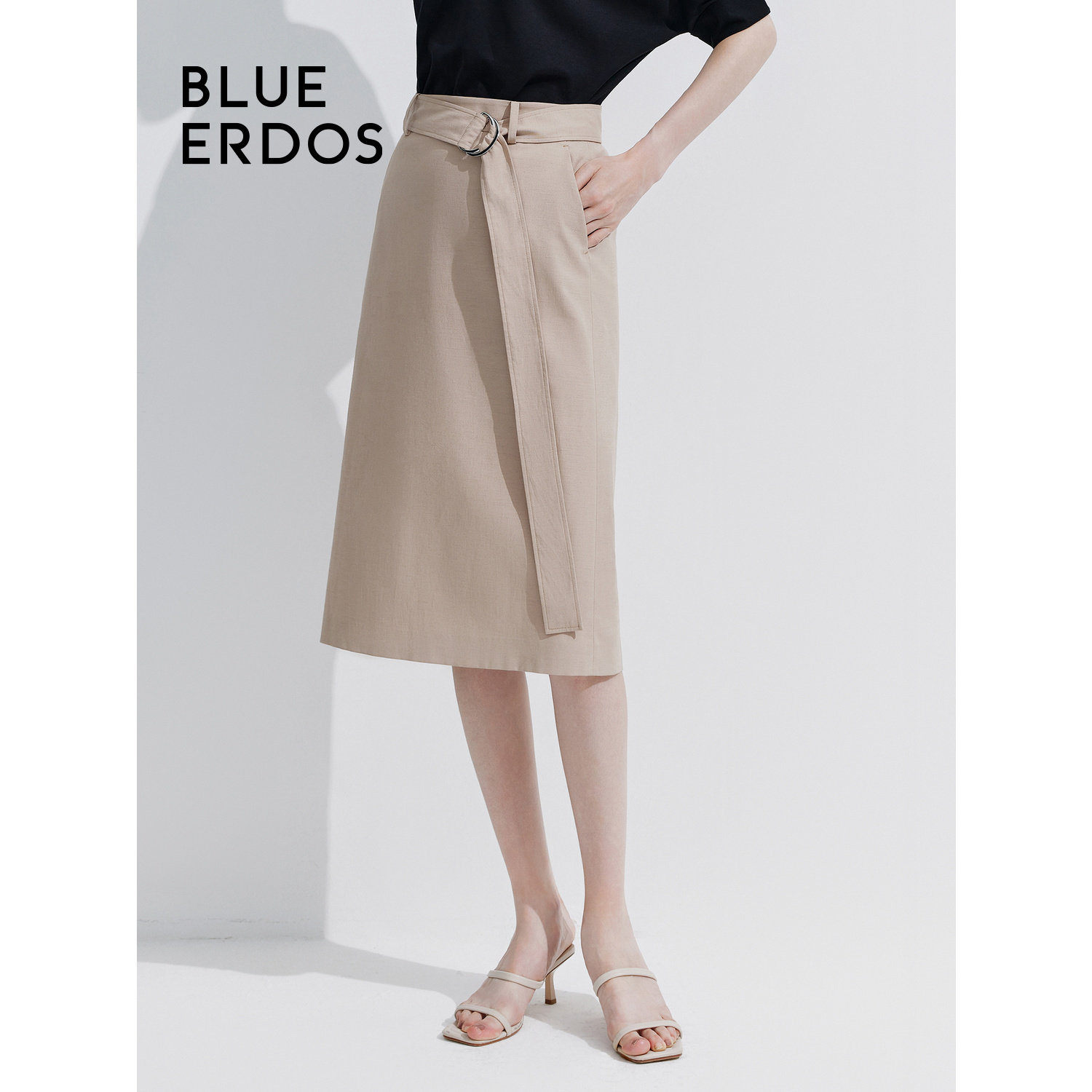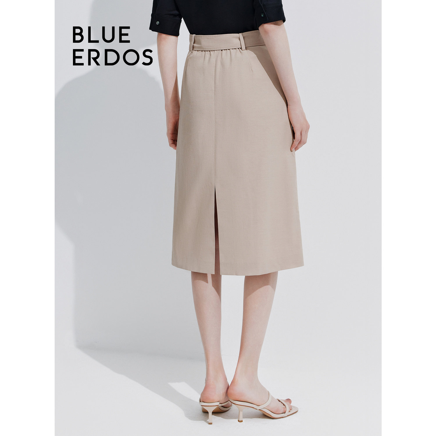 BLUE ERDOS 新款通勤休闲纯色中长款直筒半身裙B245M0028