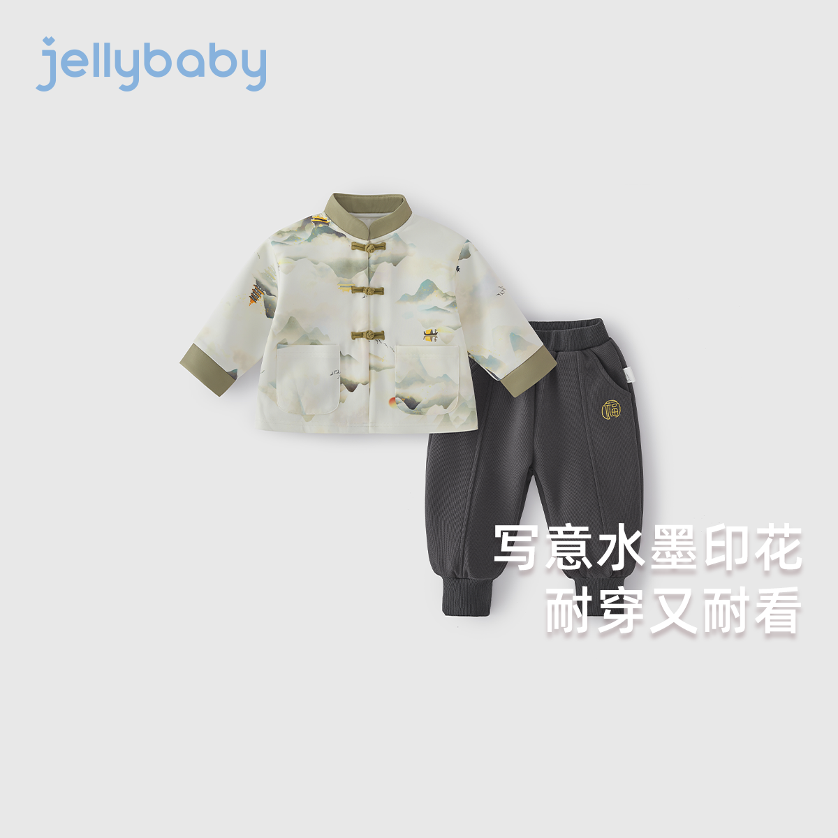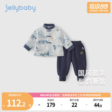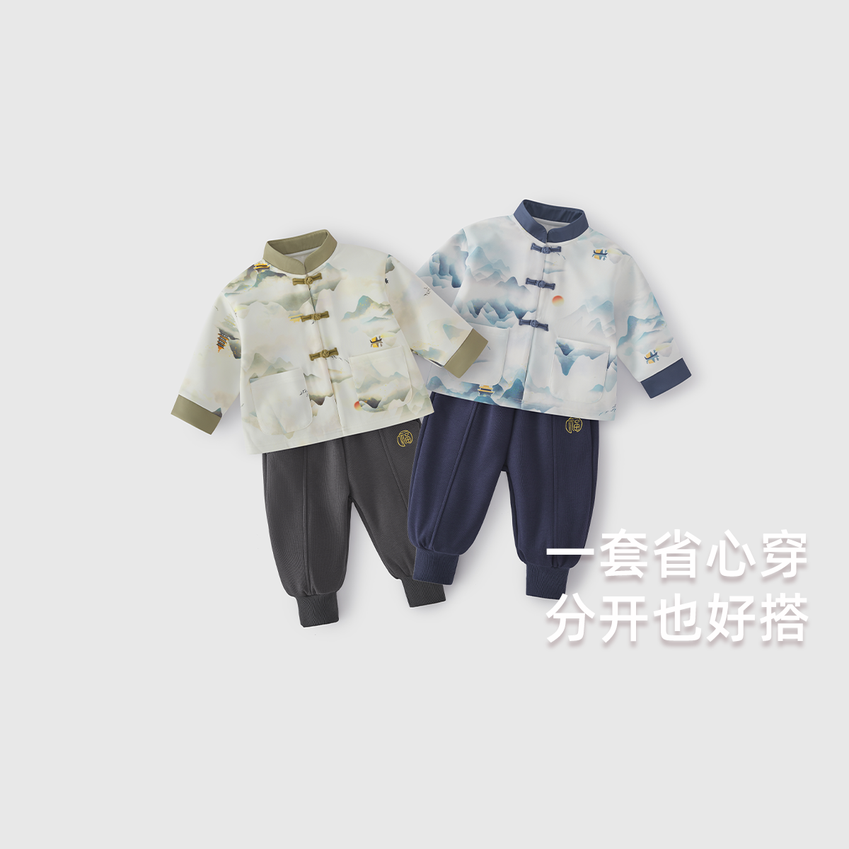 男童秋季汉服儿童套装新中式立领长袖印花唐装男宝宝中国风两件套