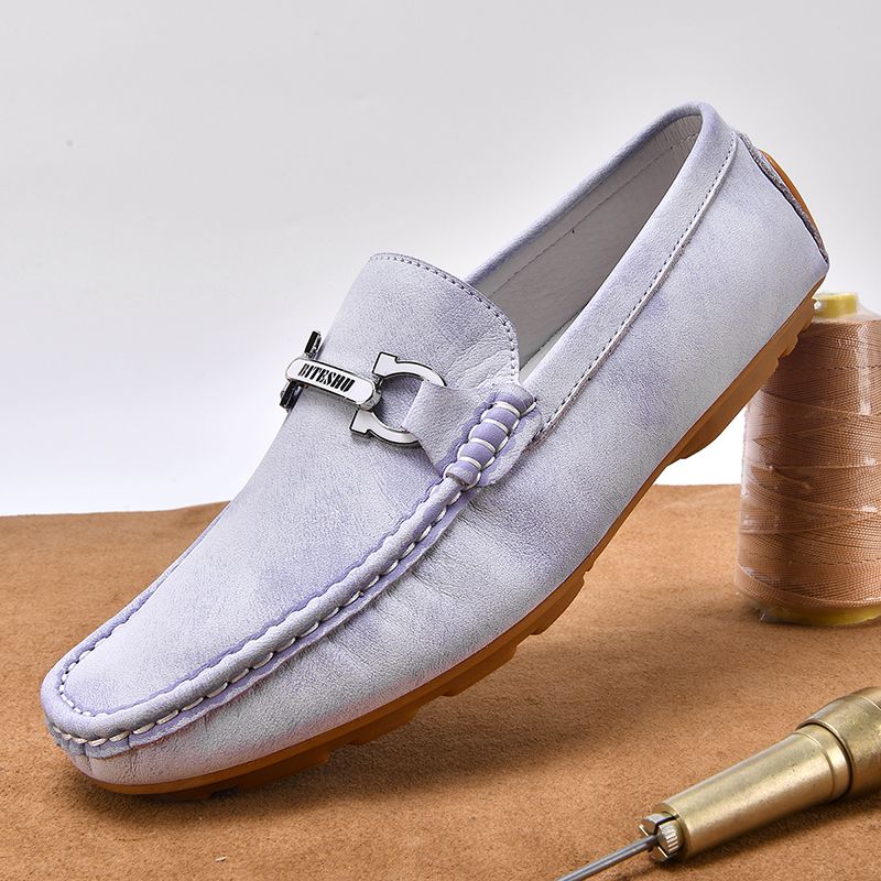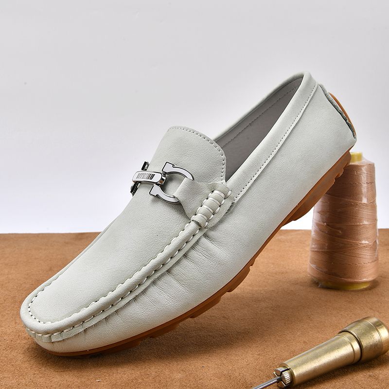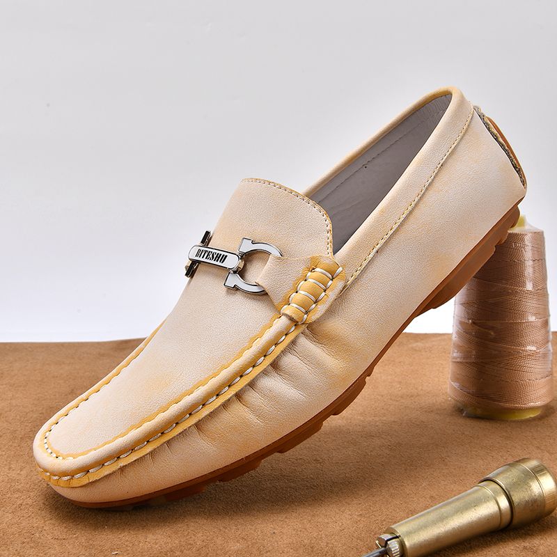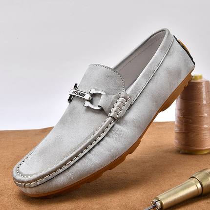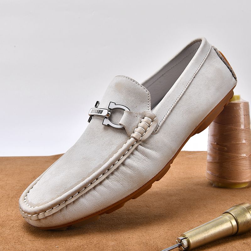 牛筋底男鞋头层牛皮休闲皮鞋软皮软底轻便透气男士英伦豆豆鞋
