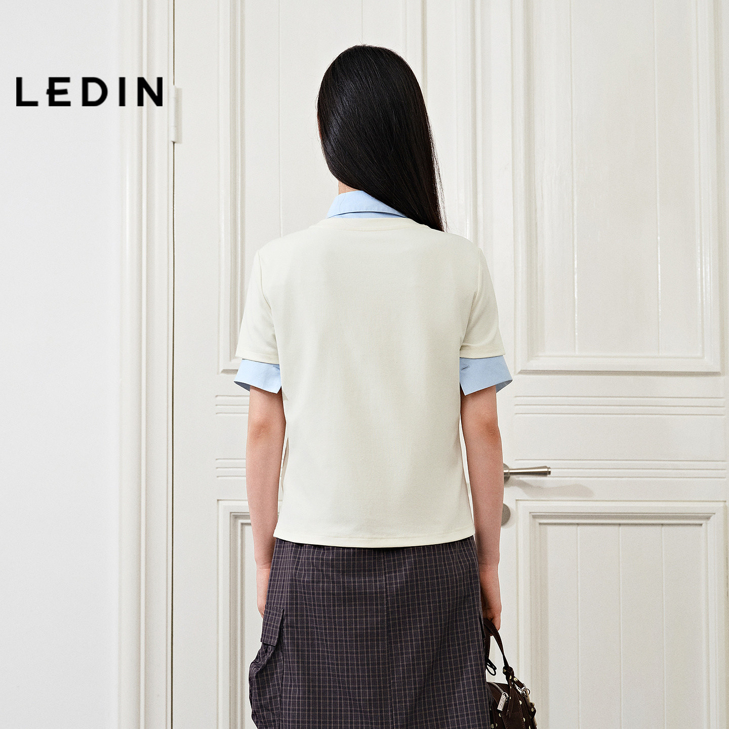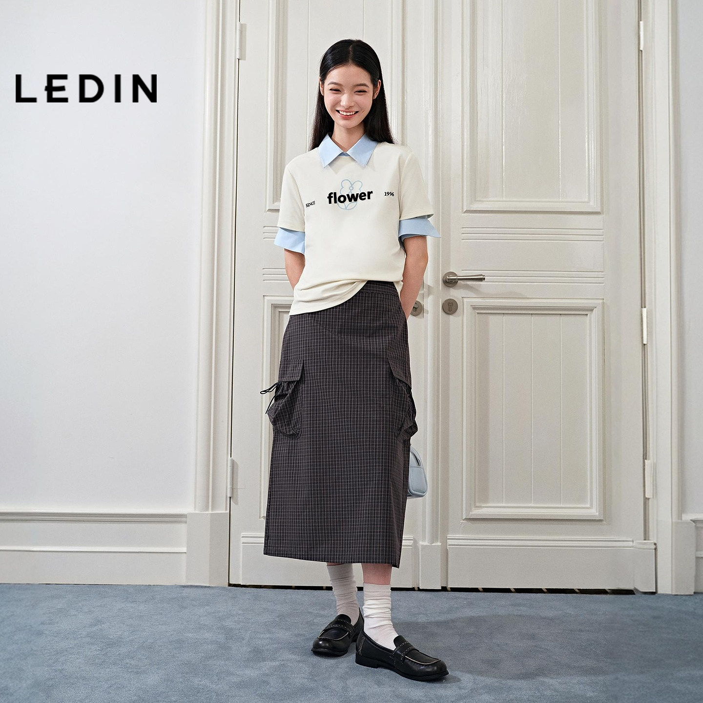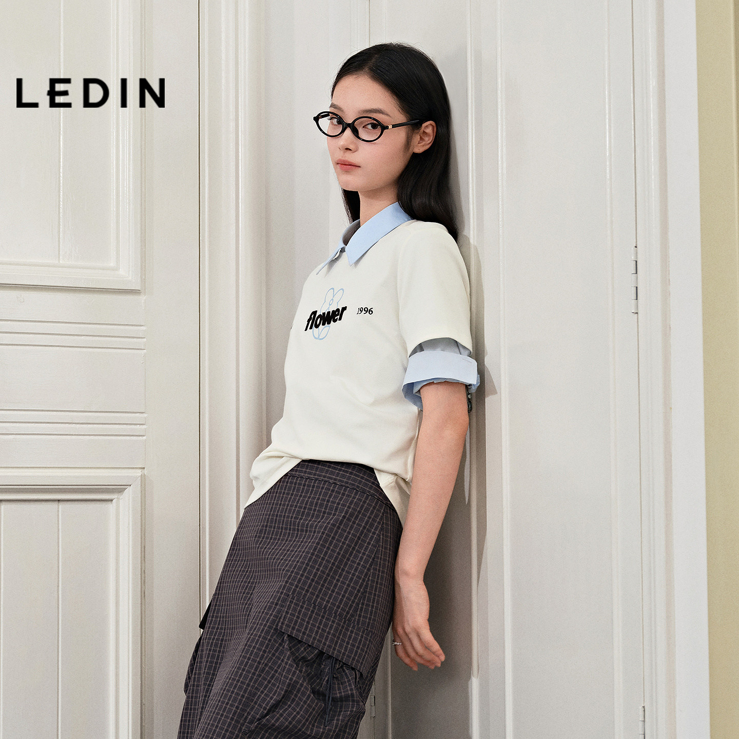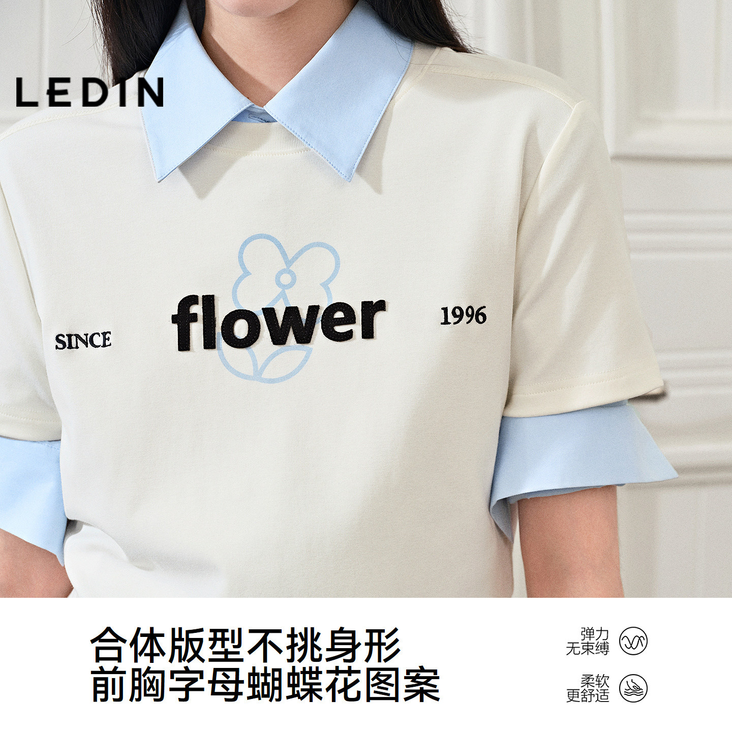 【商场同款】乐町flower短袖T恤女春季新款正肩合体上衣C2CNG1322