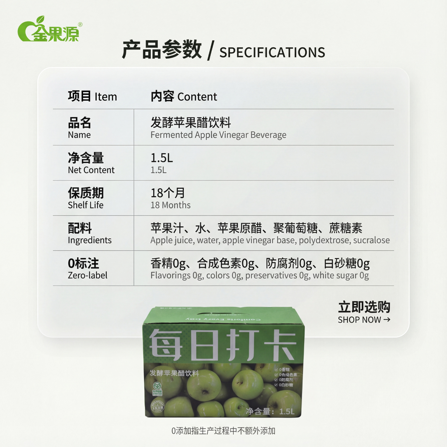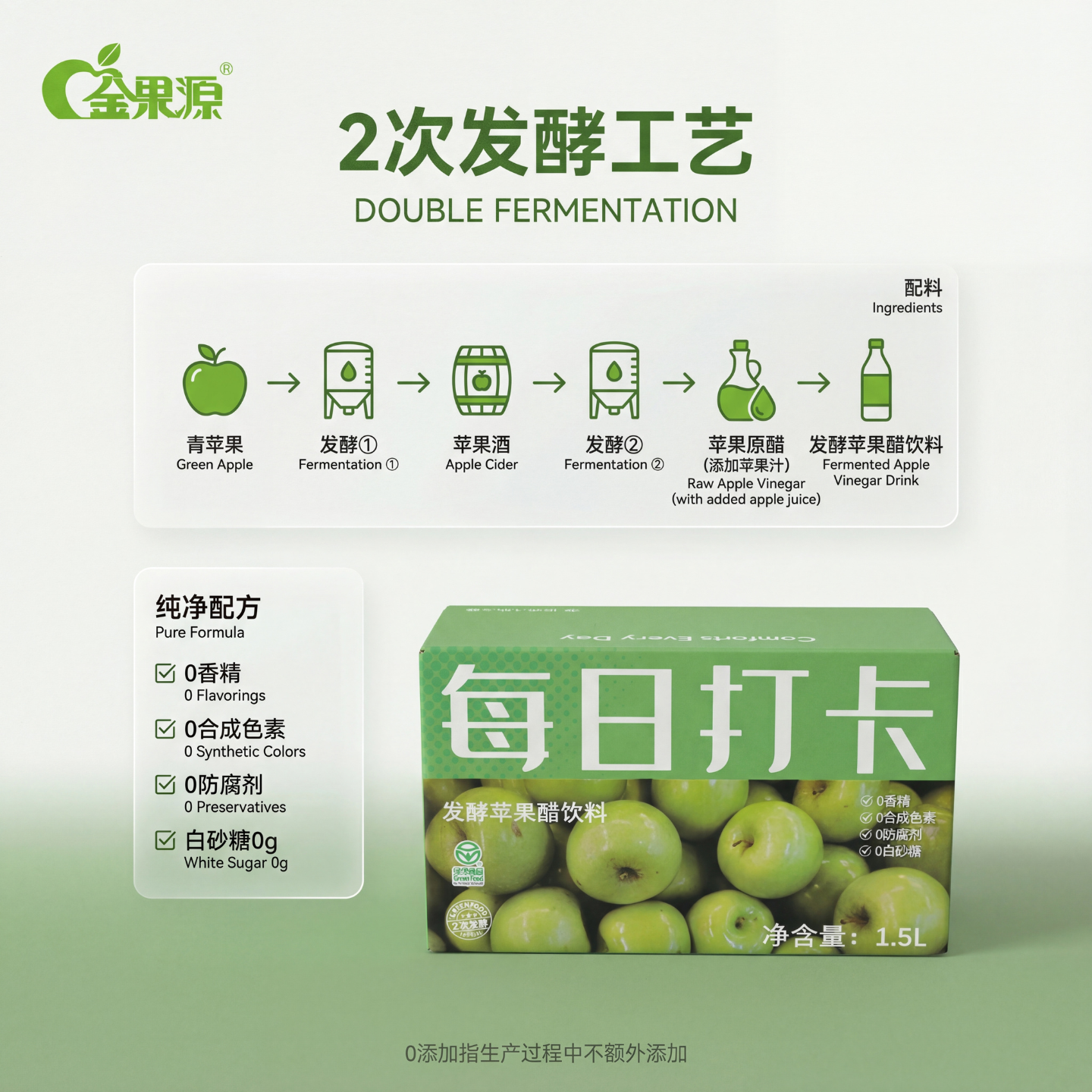 金果源 二次发酵苹果醋饮料1.5L每日打卡大容量0脂肪果汁饮料饮品