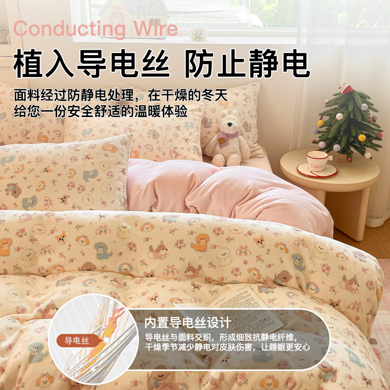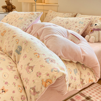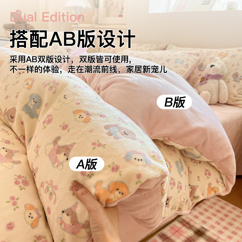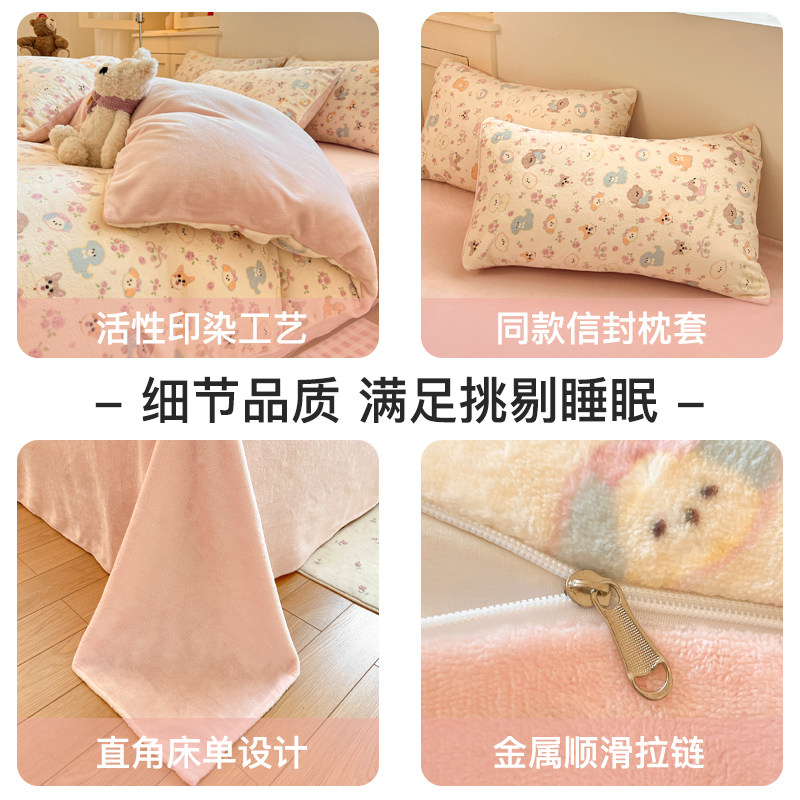 牛奶绒被套单件冬季珊瑚绒双面加绒法兰绒被罩150x200单人四件套