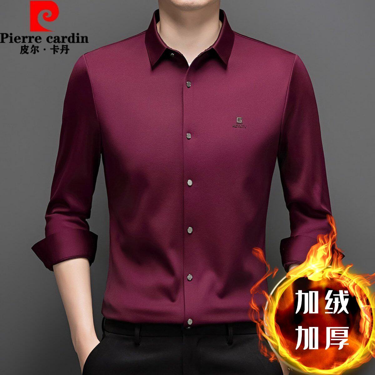 皮尔卡丹高端桑蚕丝喜公公长袖衬衫2025新款喜爸爸婚宴装平时可穿