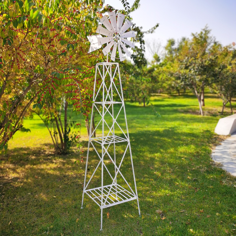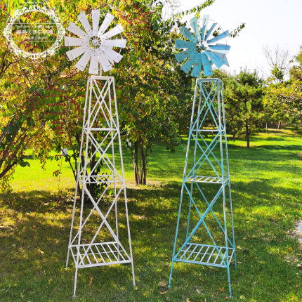 复古铁艺大风车户外花架摆件 室内阳台花K园庭院爬架多层架置物架