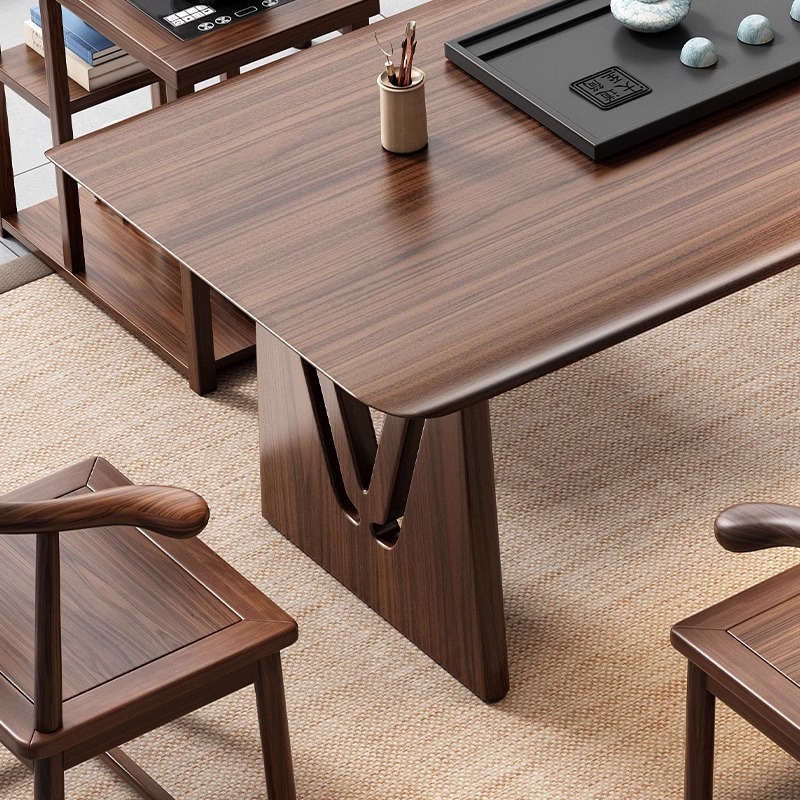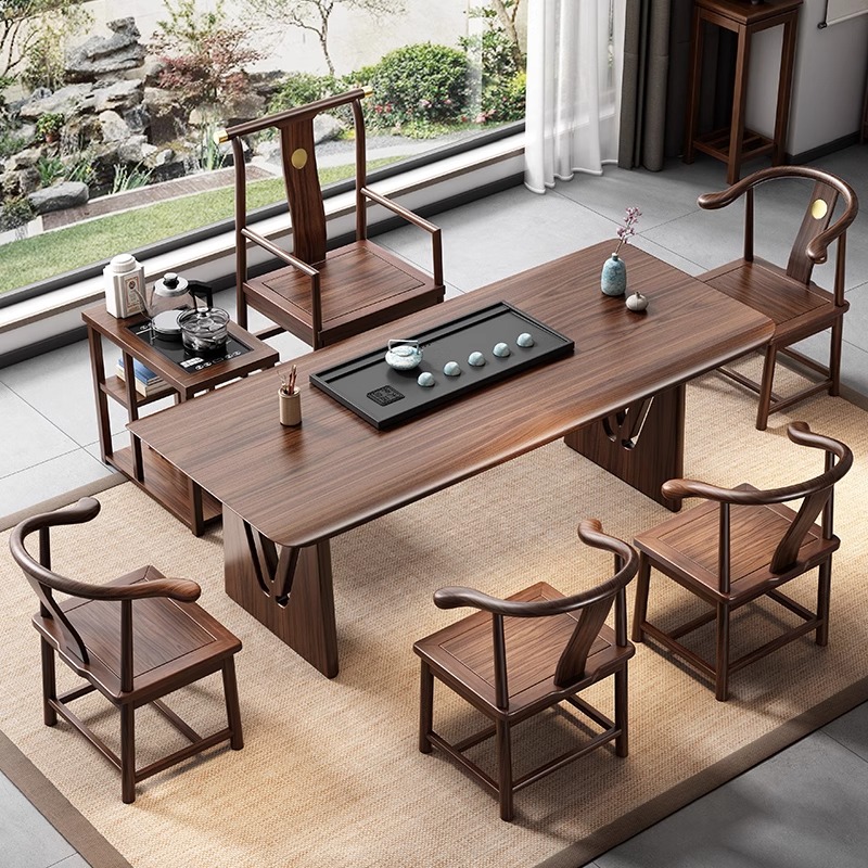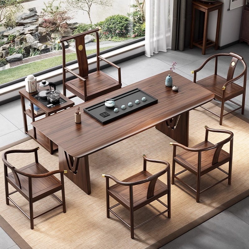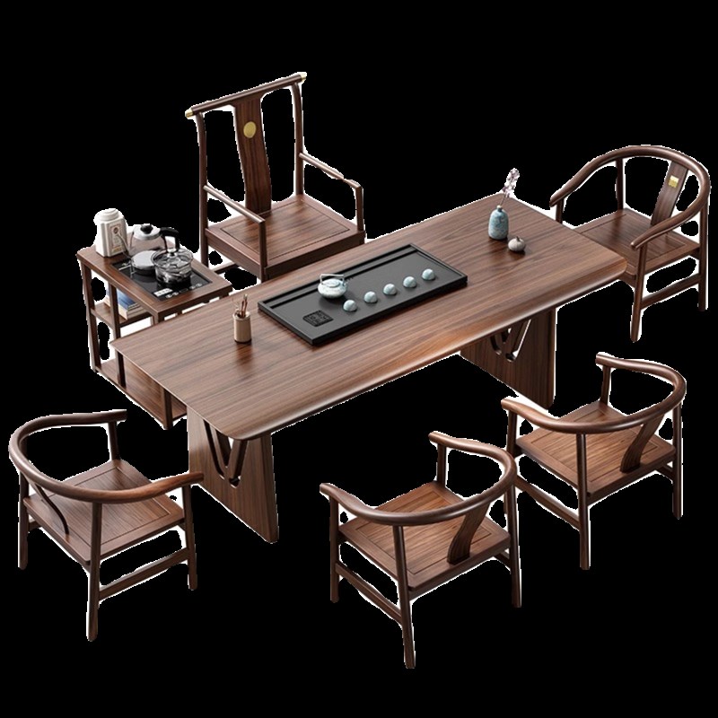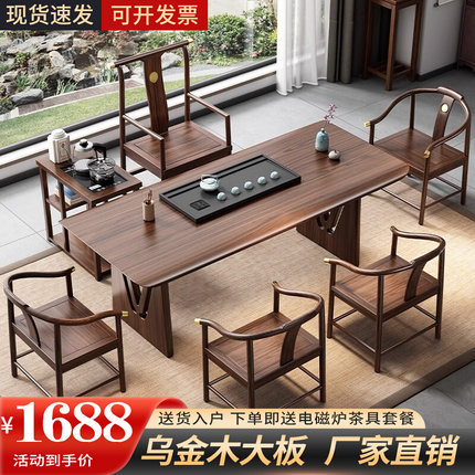 乌金木实木大板茶桌椅组合新中式现代简约办公家用干湿泡茶台一体