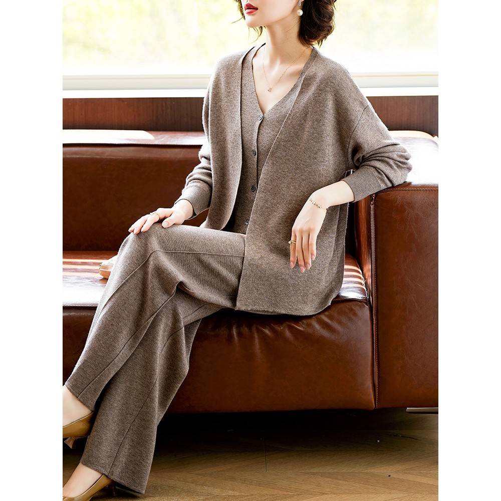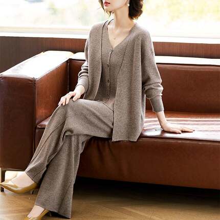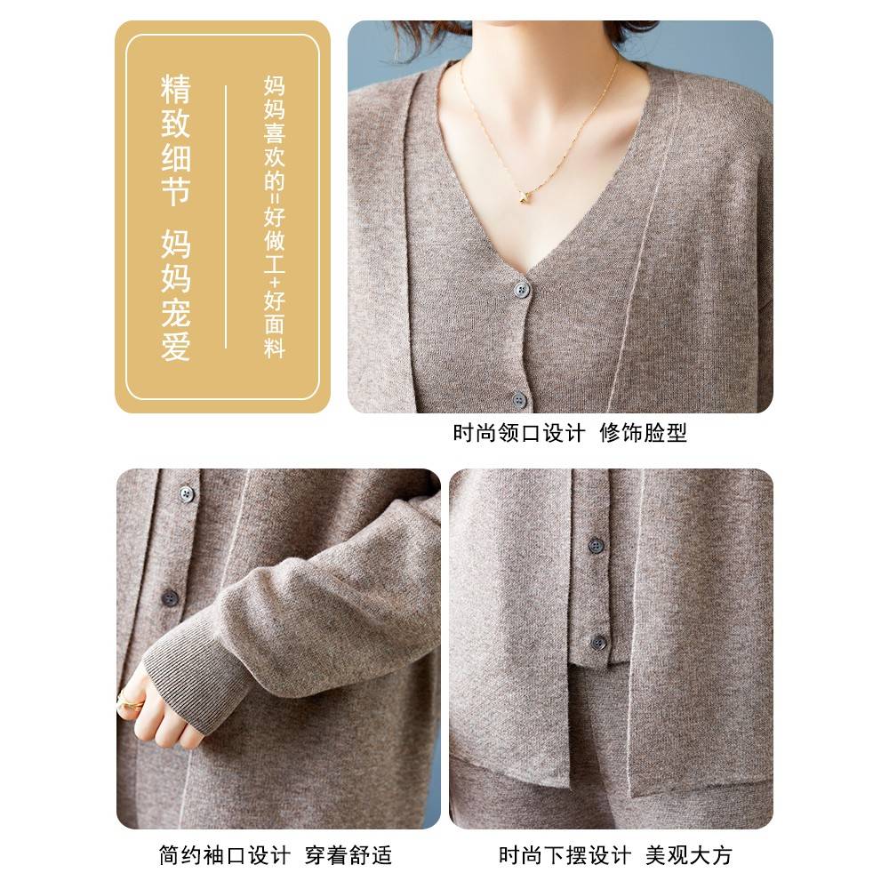 妈妈春装休闲运动服套装2025新款中老年女假两件针织衫上衣两件套