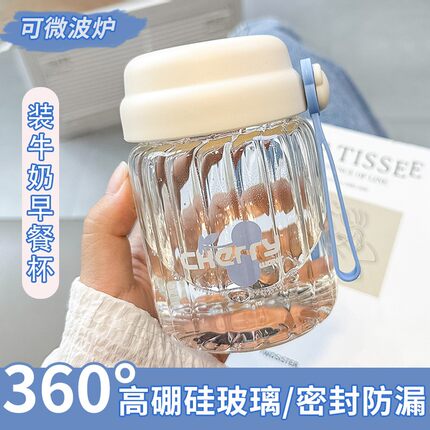 牛奶杯家用便携外带刻度微波炉可加热玻璃泡奶豆浆杯大人耐高温迷