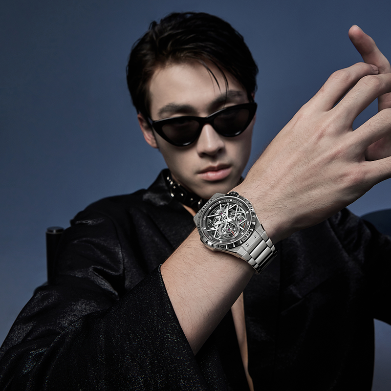 Rarone雷诺双子星Y手表男款镂空机械表商务腕表学生节日礼物