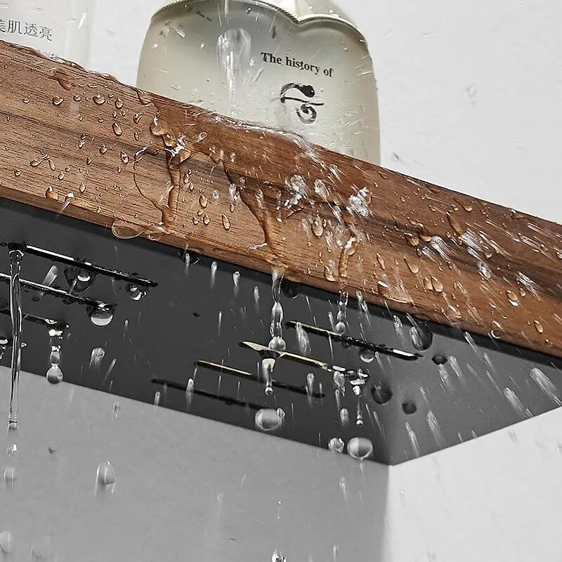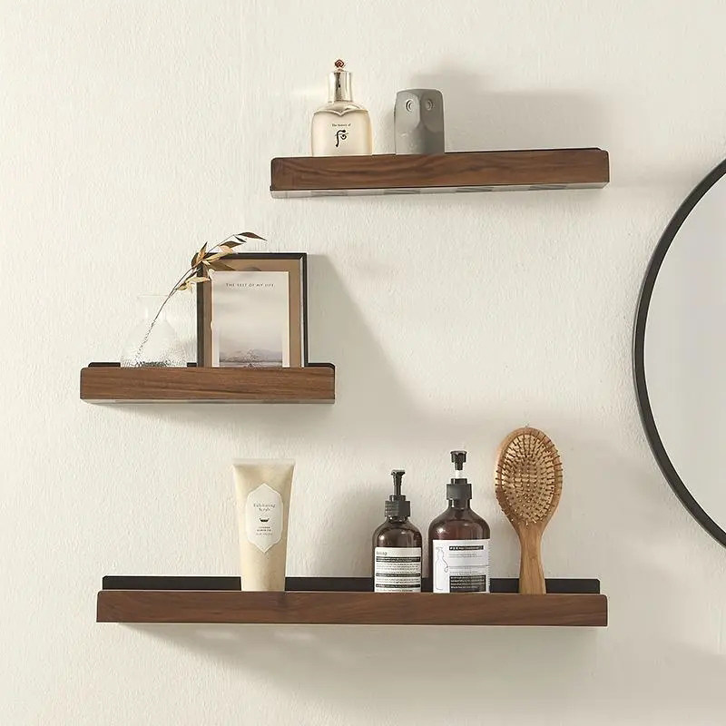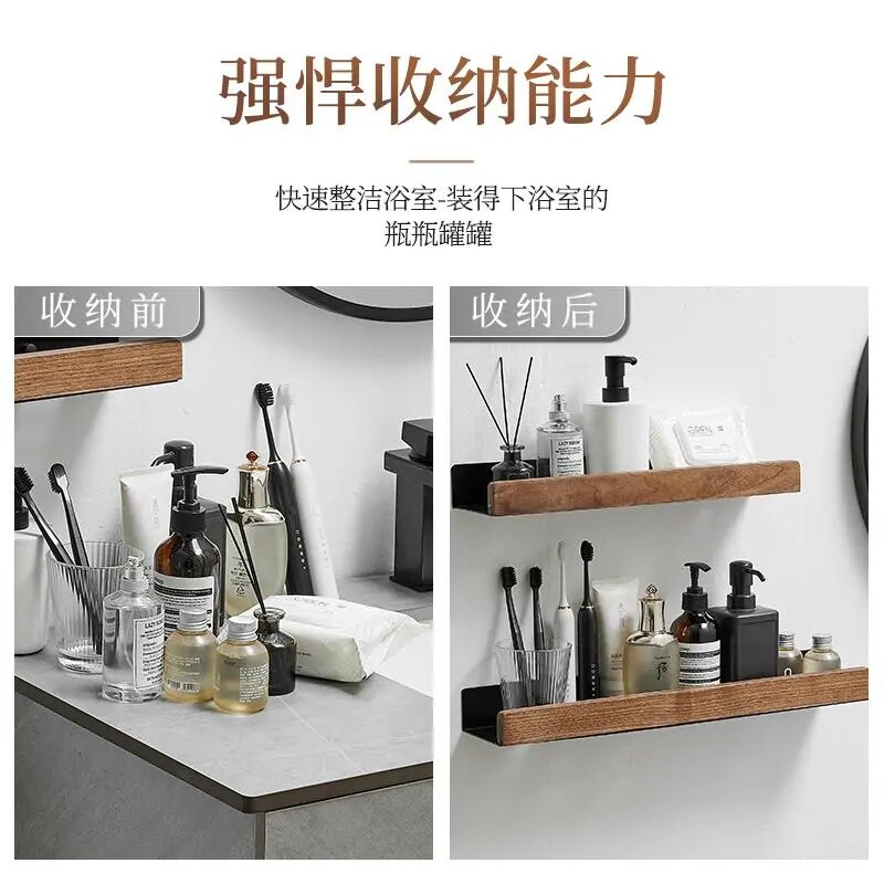 实木卫生间置物架壁挂式免打孔厕所洗漱台化妆品防水浴室收纳架子