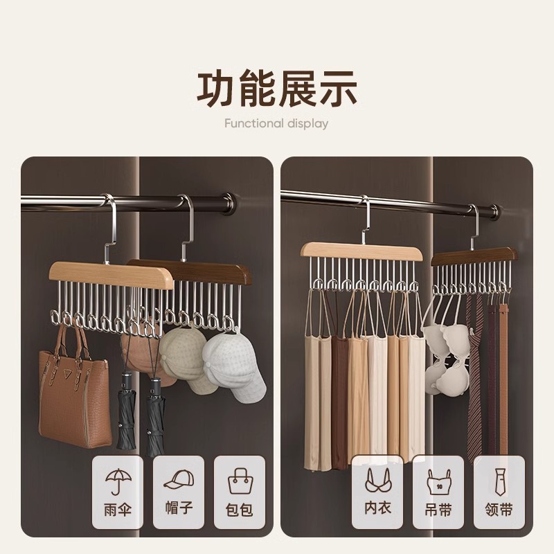 木质吊带衣架内衣收纳神器家用多功能无痕挂钩晾衣架衣柜复古原木