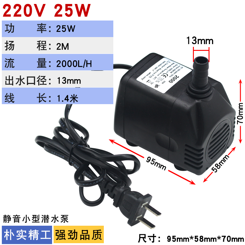 微型循环b静音鱼缸水族箱水空调扇冷风机潜水泵家用小抽水泵8W/18