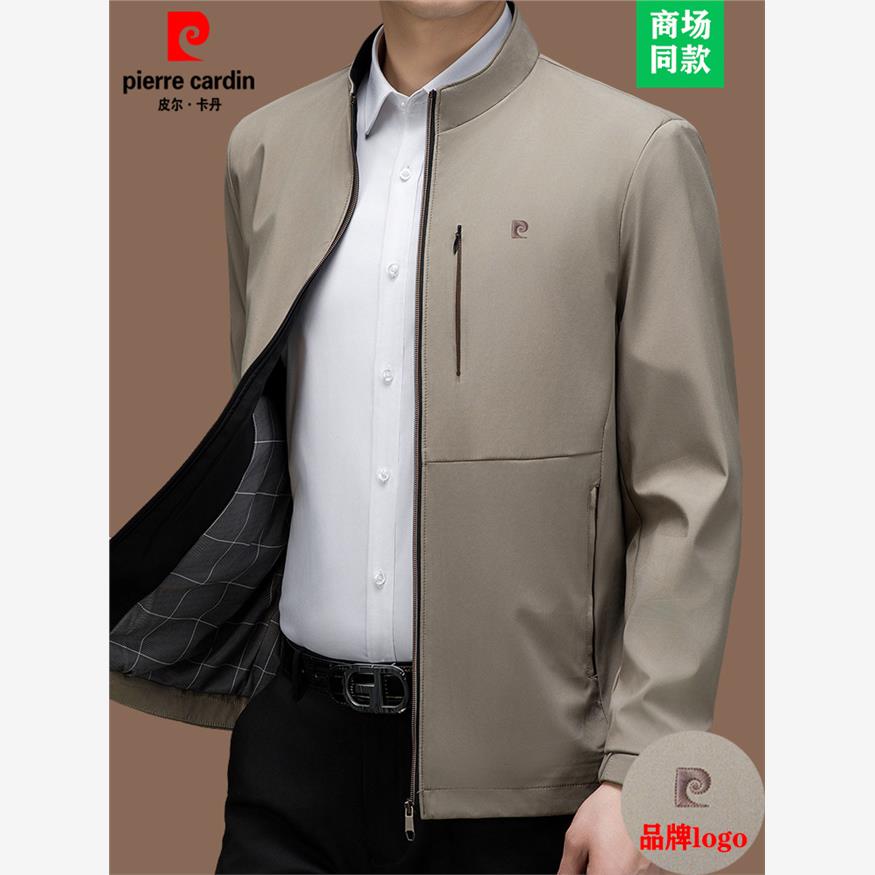 皮尔卡丹高端桑蚕丝立领夹克男秋季新款中年商务休闲男士茄克外套
