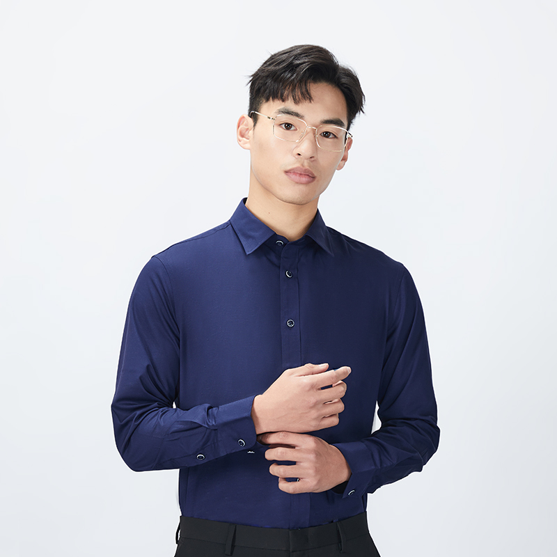 乔治白男士春秋混纺微弹长袖衬衫商务尖领修身纯色休闲衬衣