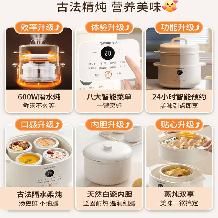九阳电炖锅燕窝炖盅隔水炖家用陶瓷煲汤锅专用全自动辅食煮粥神器