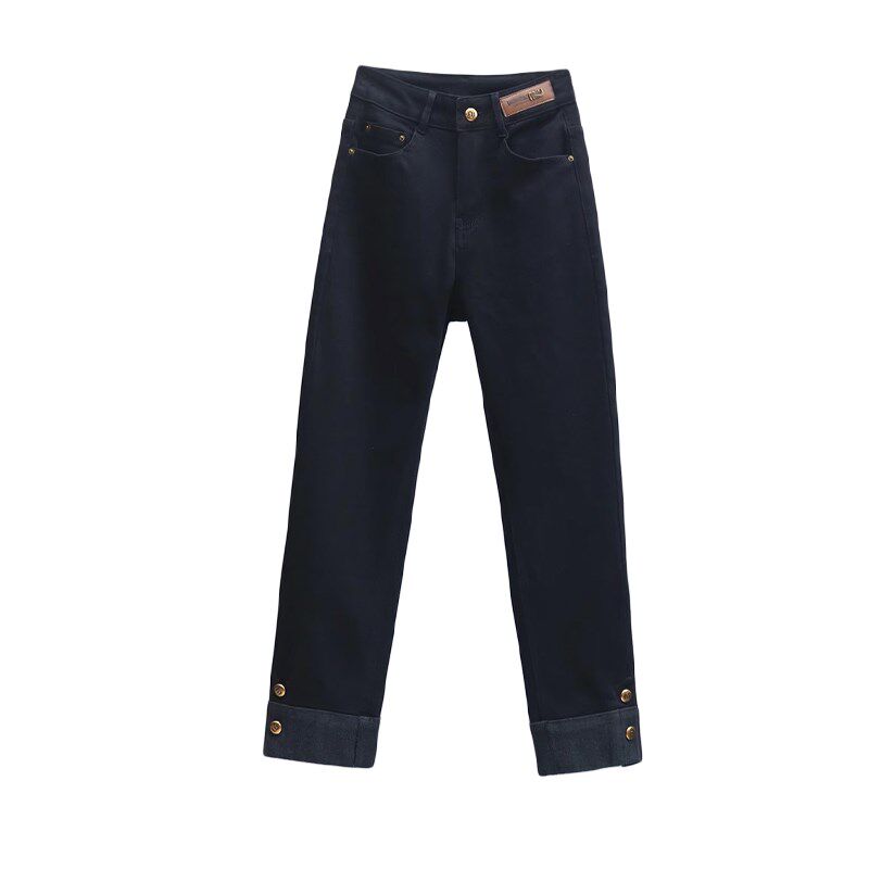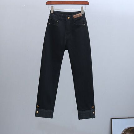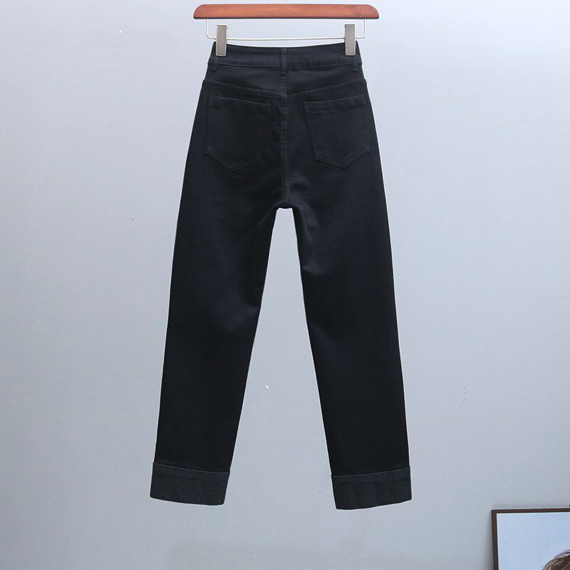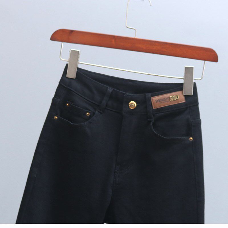 牛仔裤2023新款黑色显瘦修身小个子直筒裤秋冬厚款百搭9分烟管裤