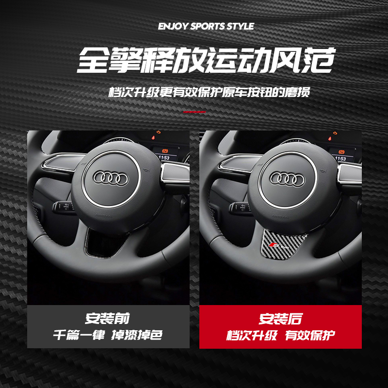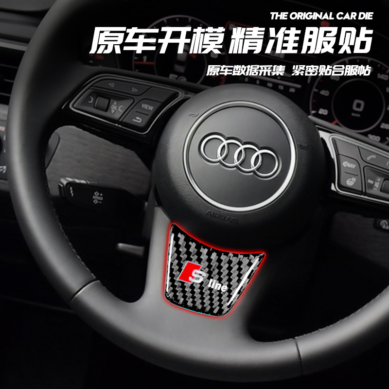 适用奥迪A4L方向盘装饰贴A3标志改装贴Q3车标贴Q5碳纤维Q2A6L亮片