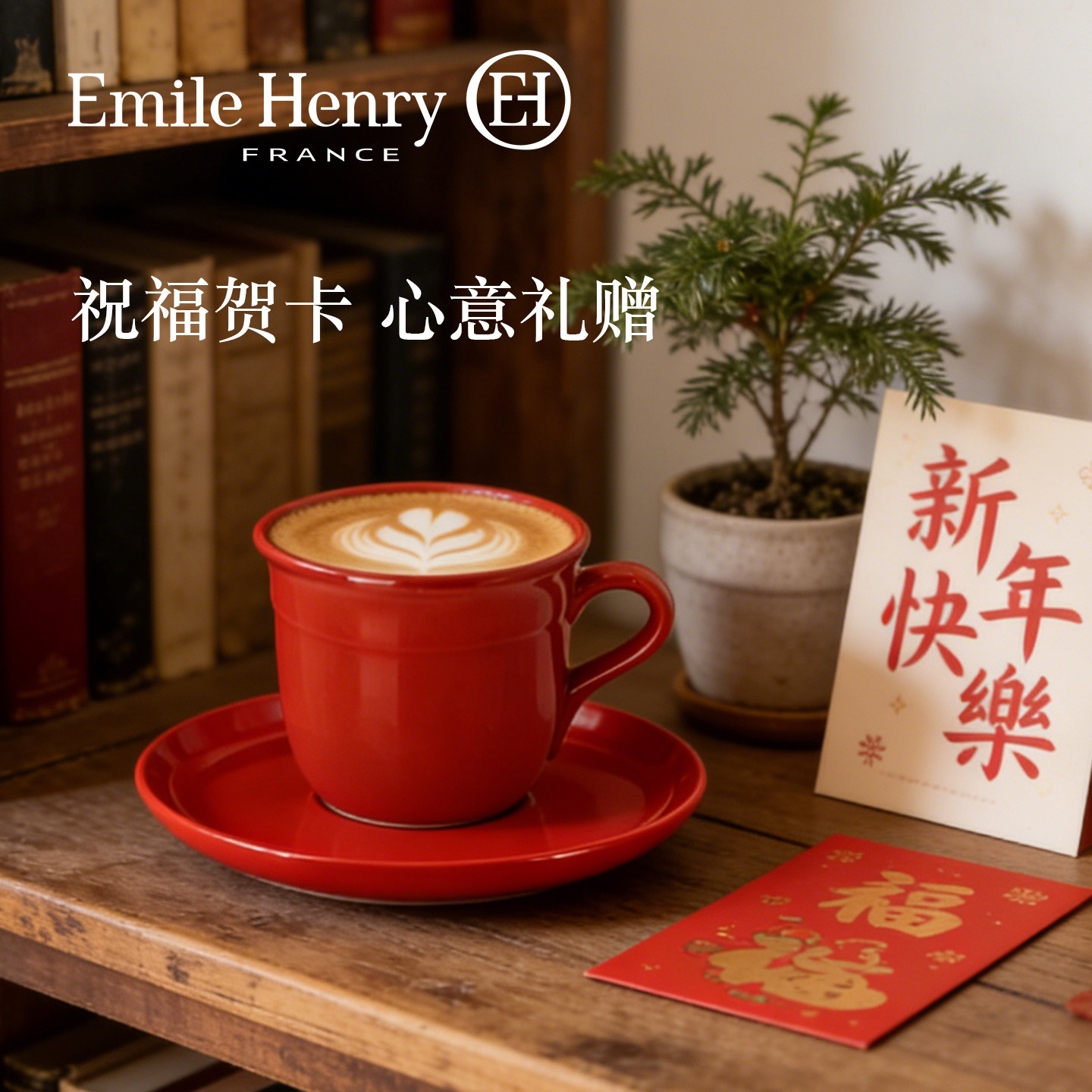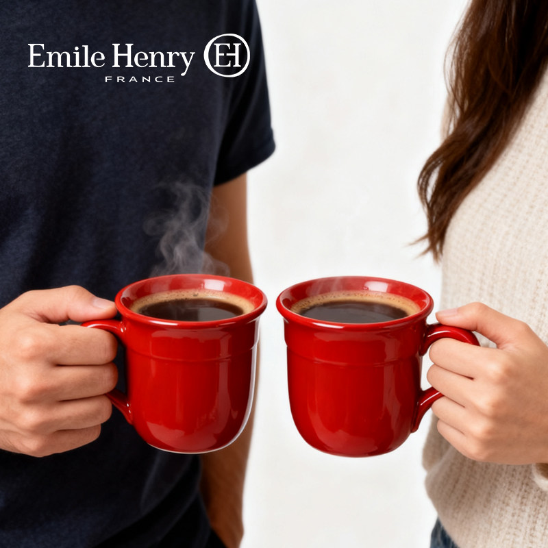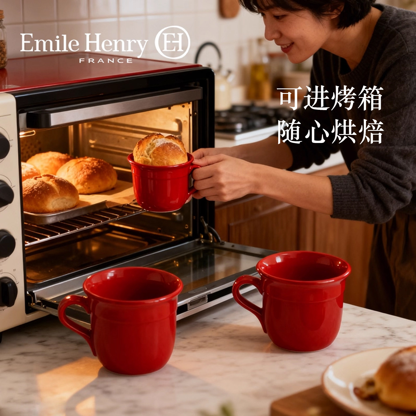 法国Emile Henry杯子陶瓷红色马克杯女咖啡杯北欧高颜值新年礼物