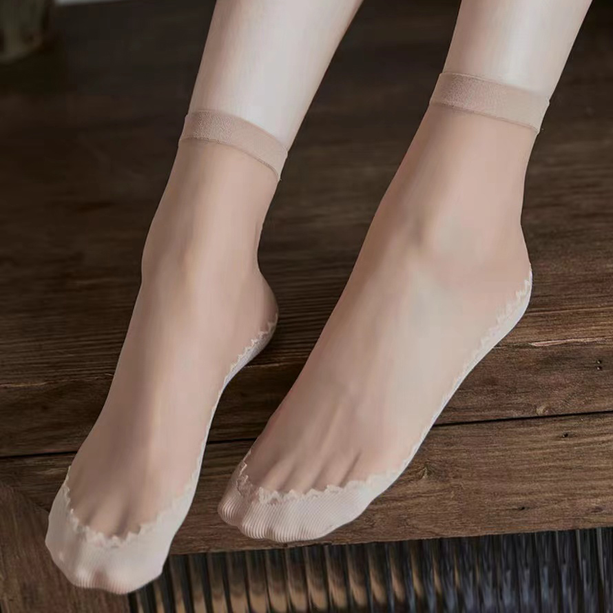 永春棉底防滑短丝袜 夏季超薄吸汗耐磨袜子 花边船型肉色加长短袜