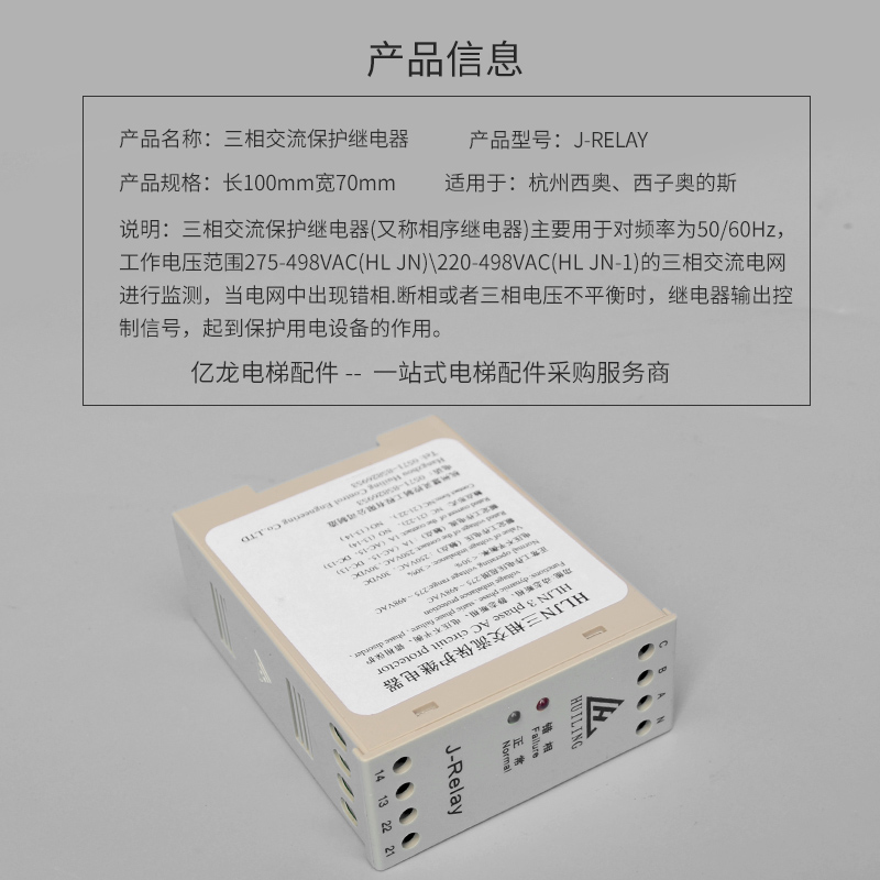 杭西奥西子奥的斯三相交流保护相序继电器HLJN3/J-Relay电梯配件