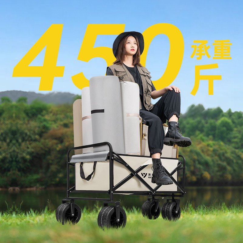 露营车户外可折叠手推车营地拖车野餐车野营手拉杆摆摊拉货小推车