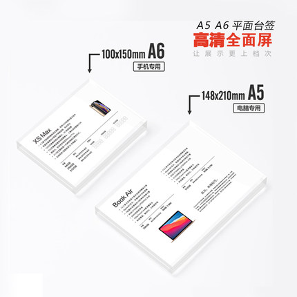 手机价格台签标签适用苹果亚克力透明A6\A5平面价格牌台牌不带标