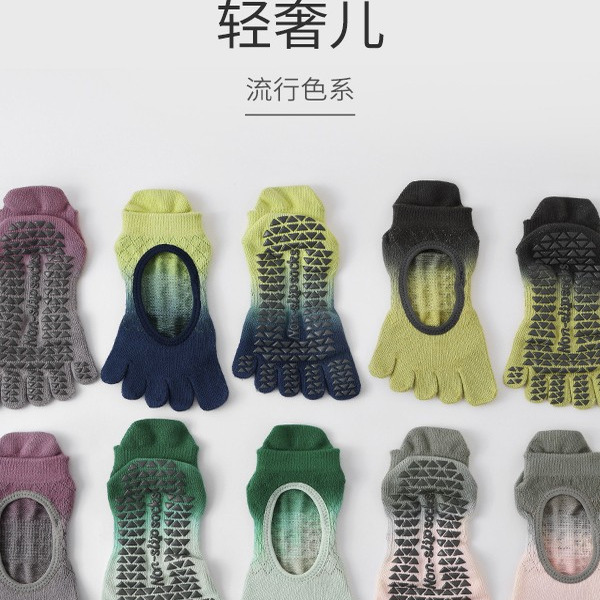 秋冬瑜伽袜子防滑专业女五指袜普拉提专用分趾室内运动健身渐变款