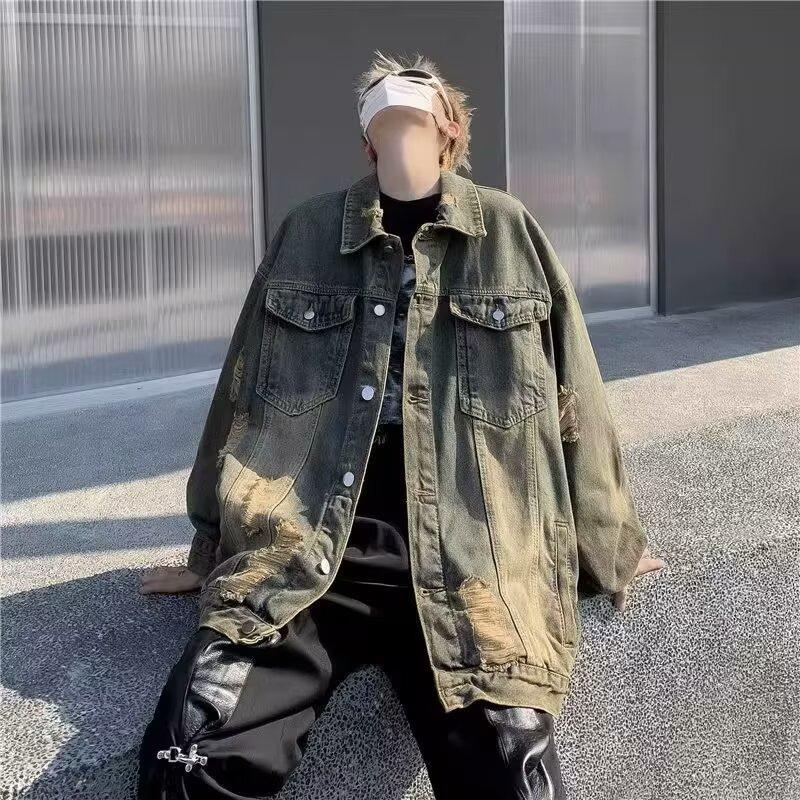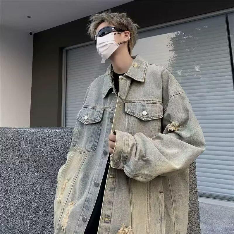 破洞乞丐牛仔外套男春季美式复古高街夹克春秋款水洗做旧痞帅衣服