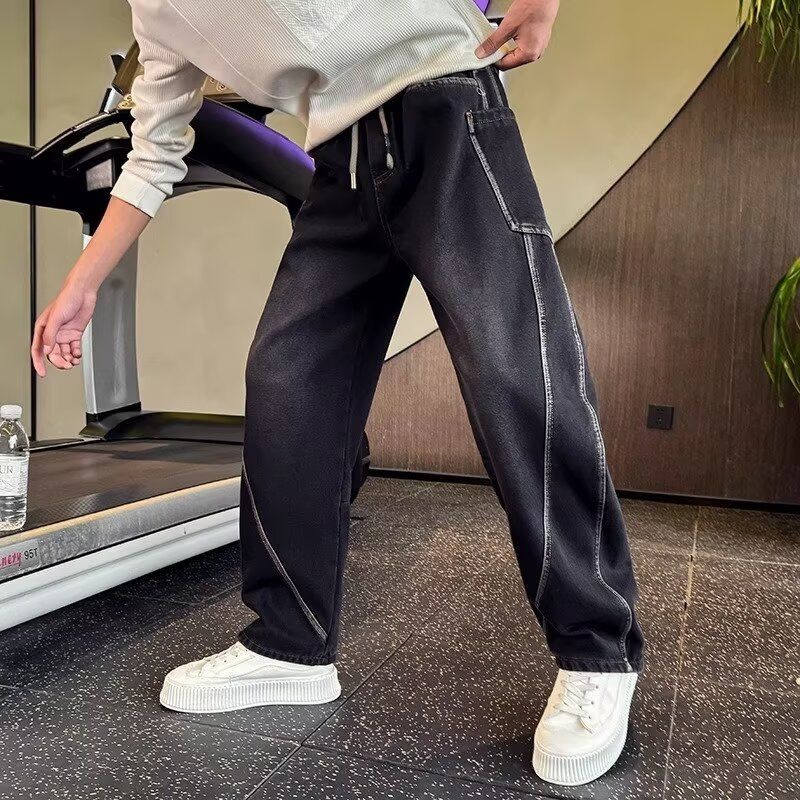 日系复古水洗牛仔裤男夏季薄款宽松直筒九分裤韩版潮流百搭哈伦裤