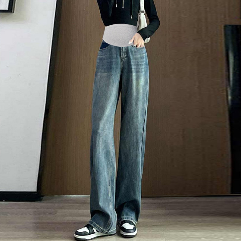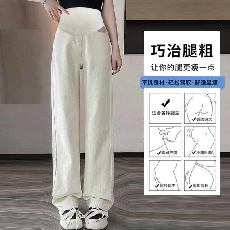 孕妇裤子夏季外穿薄款孕早期直筒阔腿裤女夏款大码打底牛仔裤春秋