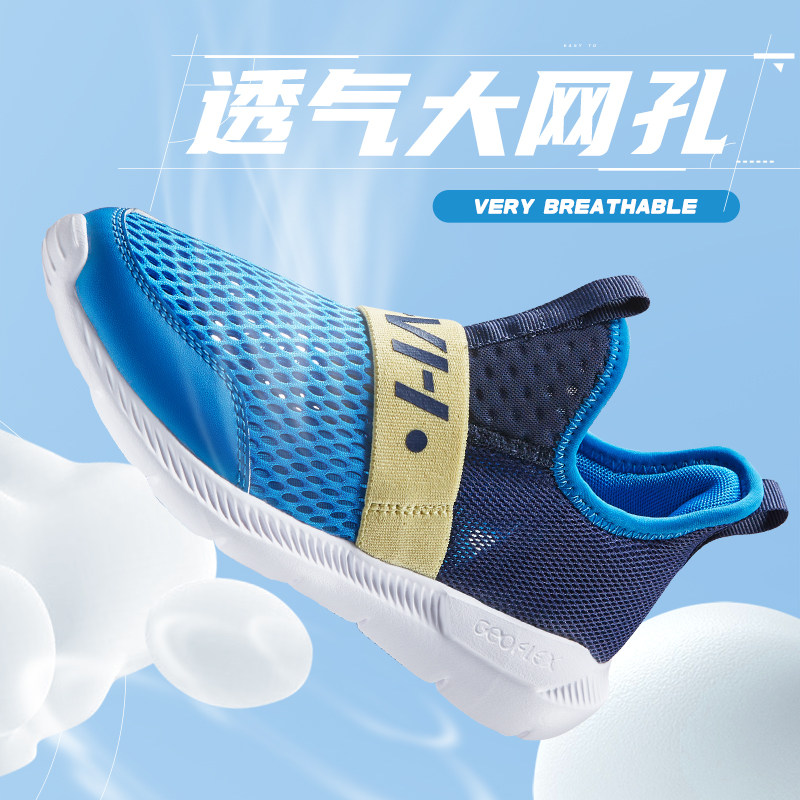 361童鞋男童运动鞋一脚蹬新款夏季单网大网眼网面透气中大童跑鞋