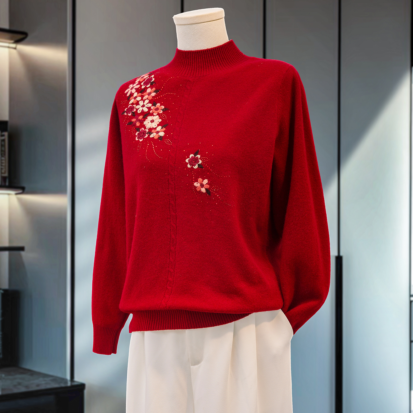 中老年100纯羊毛衫半高领加厚毛衣女洋气妈妈冬装内搭羊绒打底衫
