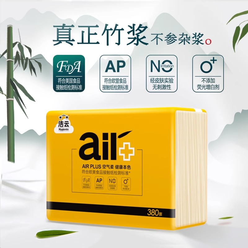 洁云卫生纸本色380张平板卫生纸厕纸家用实惠装加厚厕纸Air空气柔