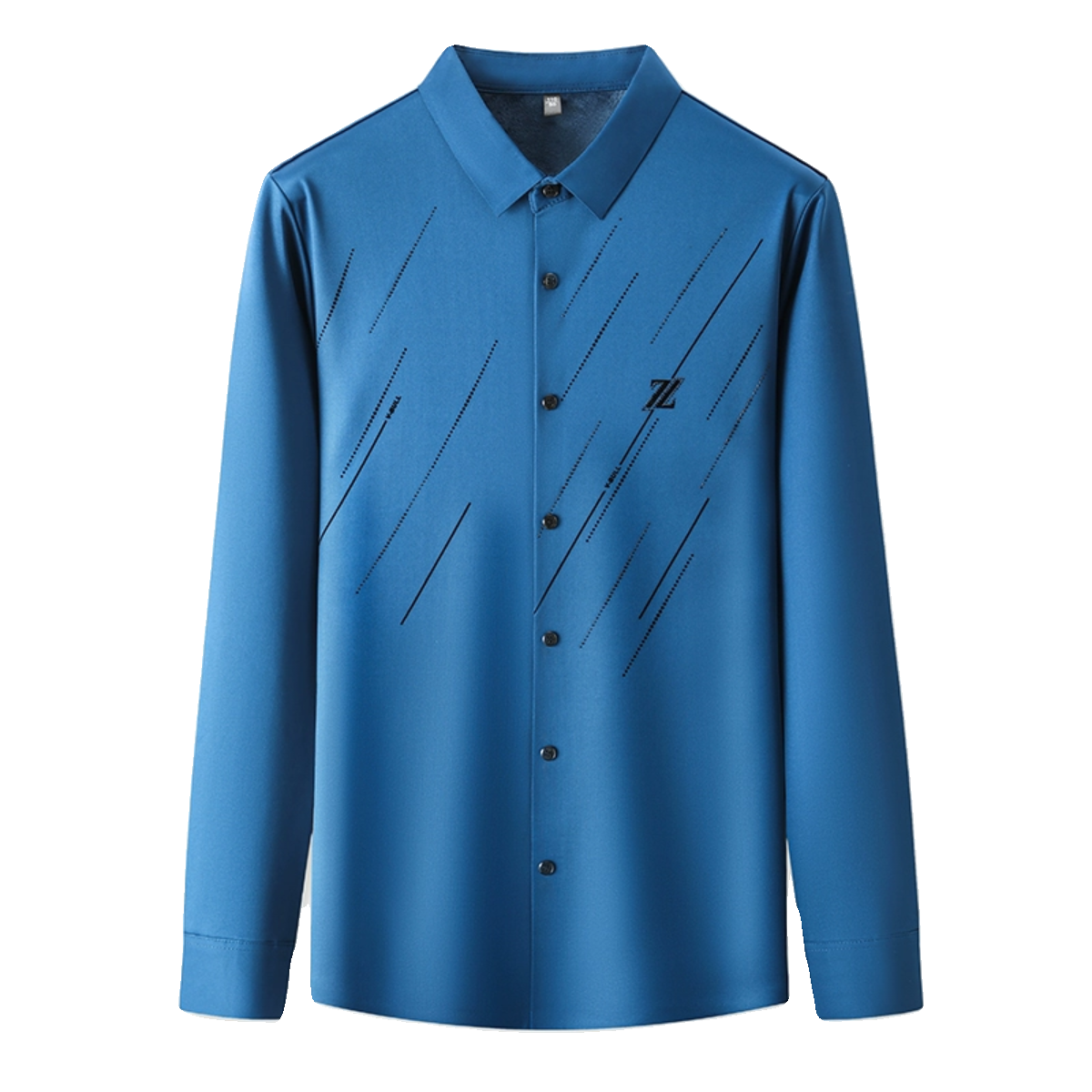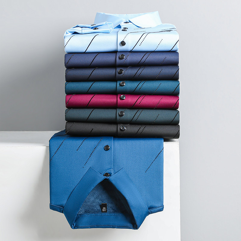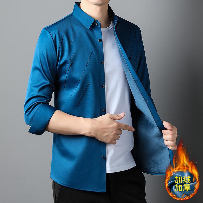 保罗潮流男士长袖保暖衬衫秋冬季加绒加厚高弹力无痕高端真丝衬衣