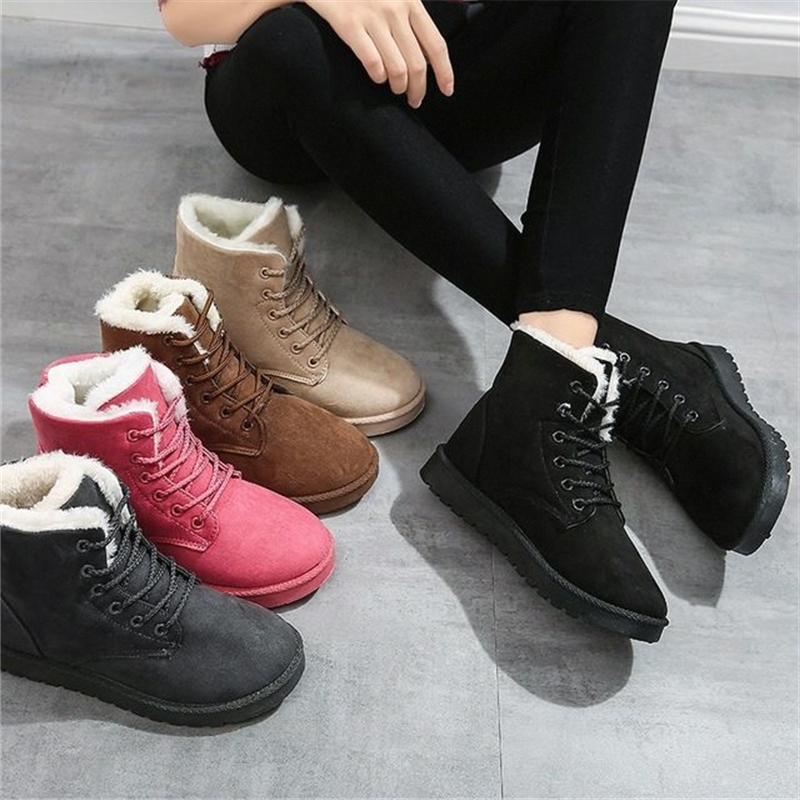 女靴子雪地靴学生秋冬季加厚短筒马丁靴系带加绒女鞋平跟棉鞋短靴
